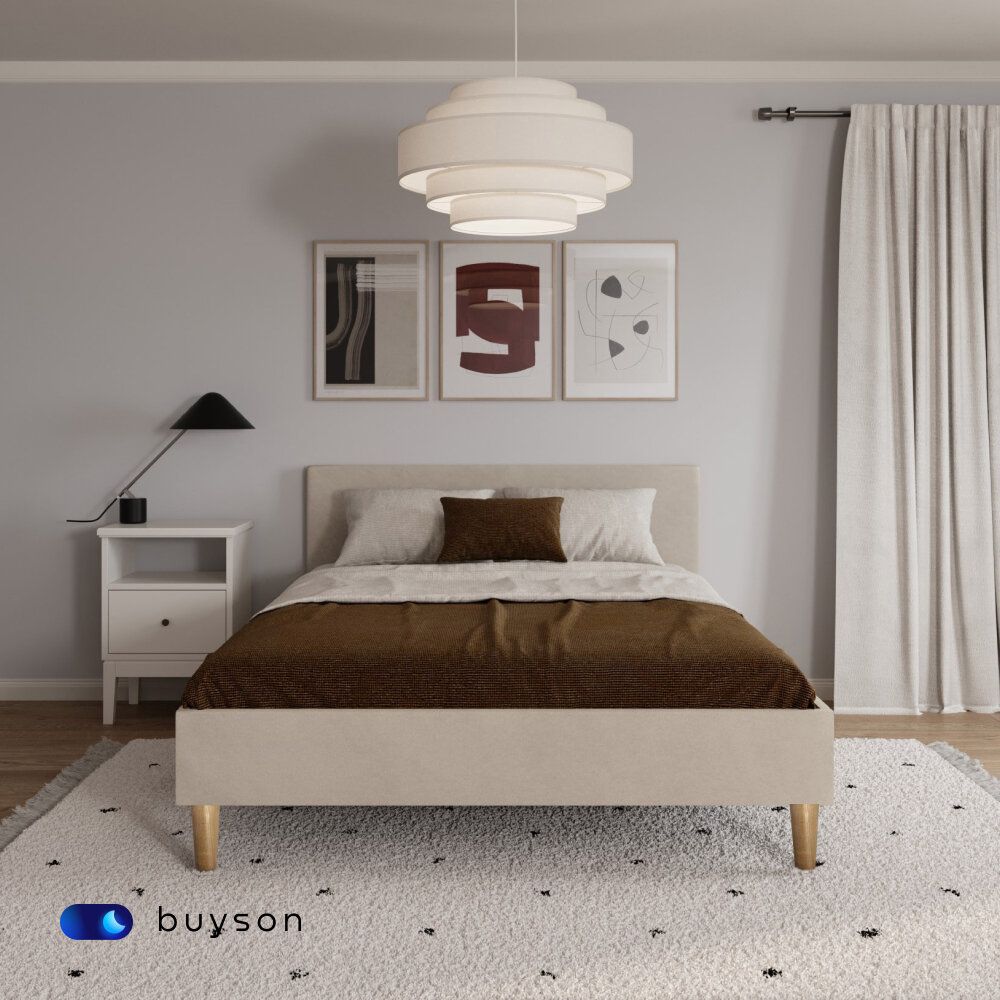 Купить Двуспальная кровать buyson BuyStyle 200х140 см, микровелюр, бежевый