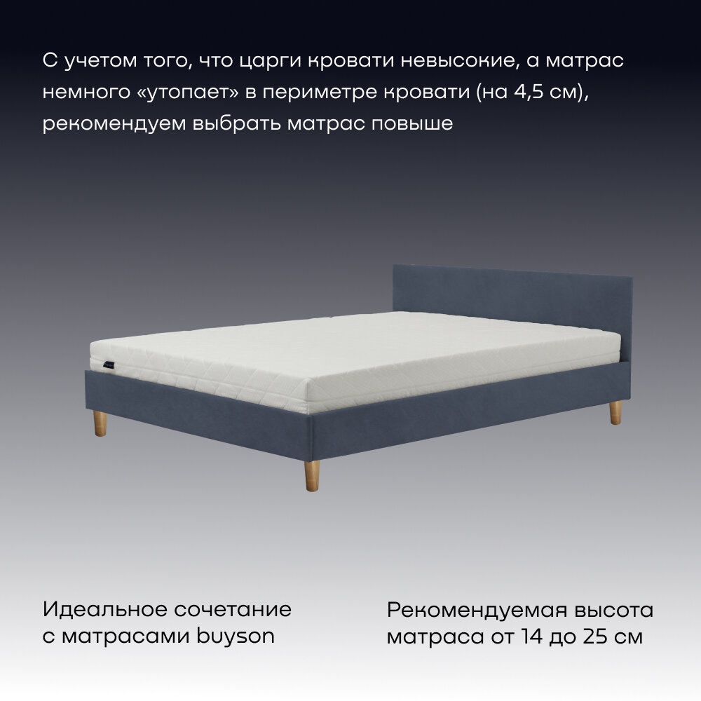 Двуспальная кровать buyson BuyStyle 200х140 см, серо-синий, микровелюр