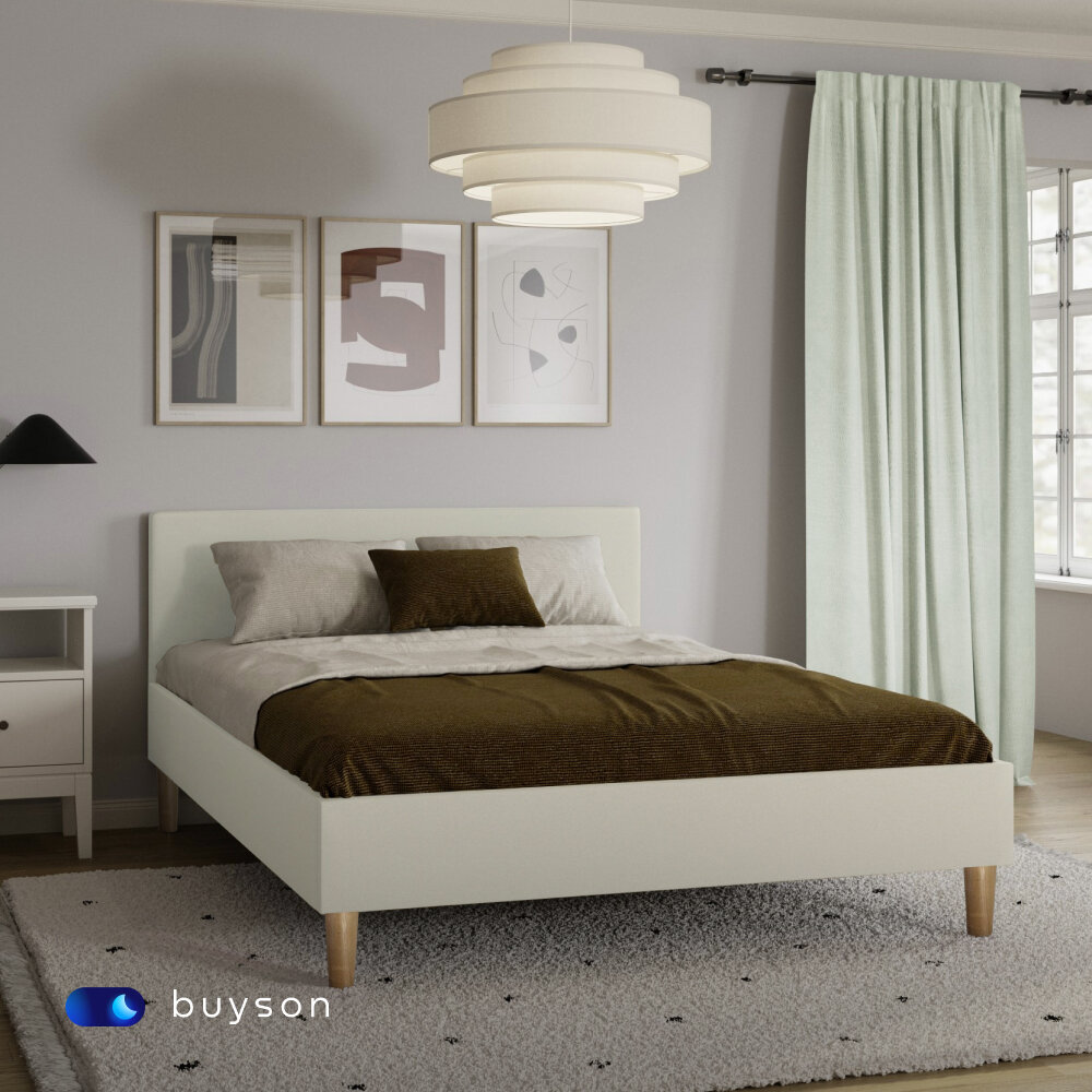 Двуспальная кровать buyson BuyStyle 200х140 см, микровелюр, слоновая кость