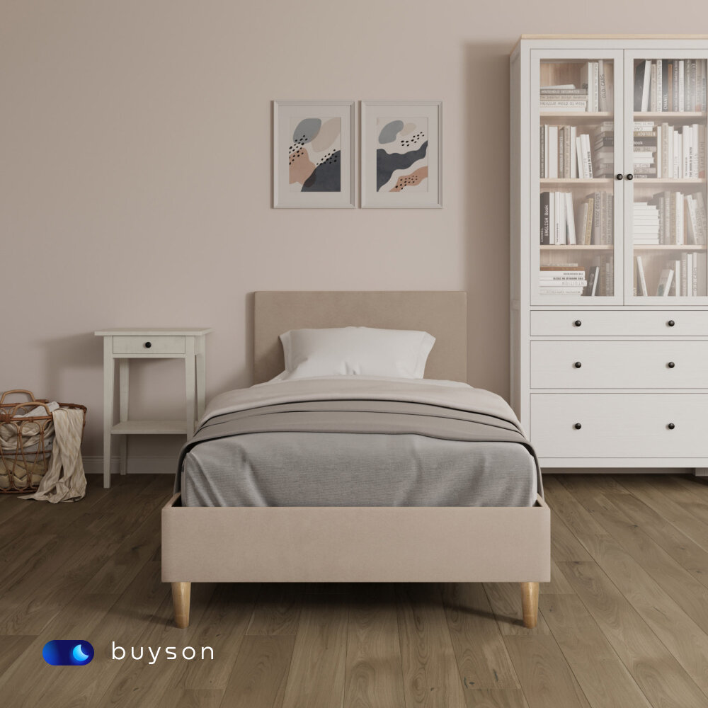 Купить Односпальная кровать buyson BuyStyle 200х90 см, микровелюр, бежевый