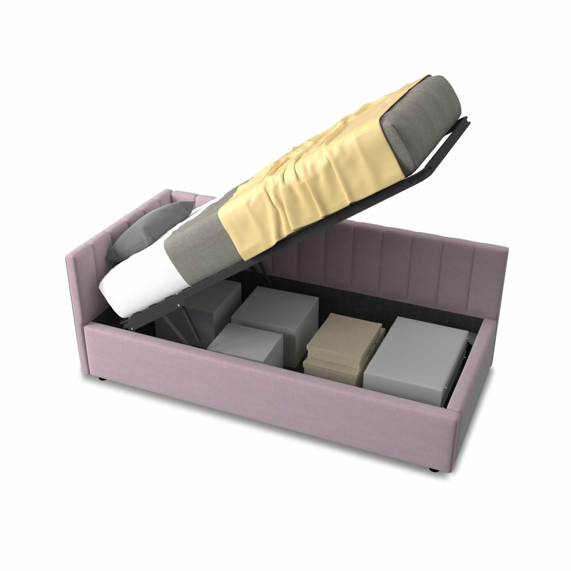 | Особенности | для детей, мягкое изголовье, основание под матрас, с подъемным механизмом, с ящиком для белья, усиленная конструкция |