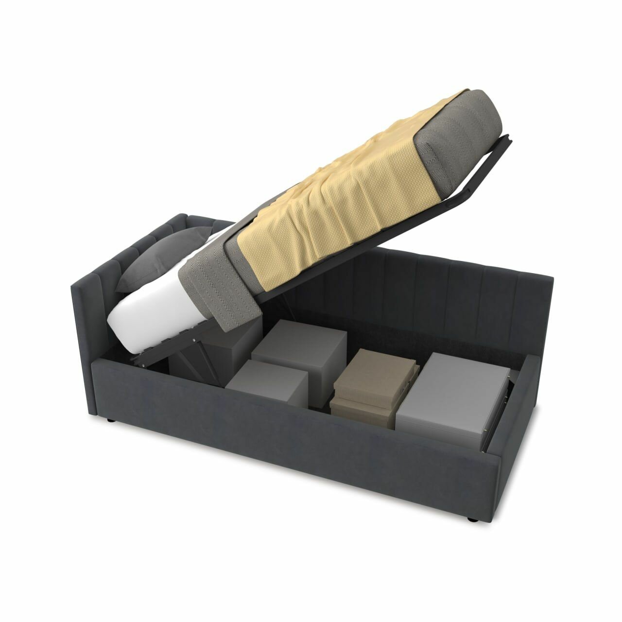 | Особенности | для детей, мягкое изголовье, основание под матрас, с подъемным механизмом, с ящиком для белья, усиленная конструкция |