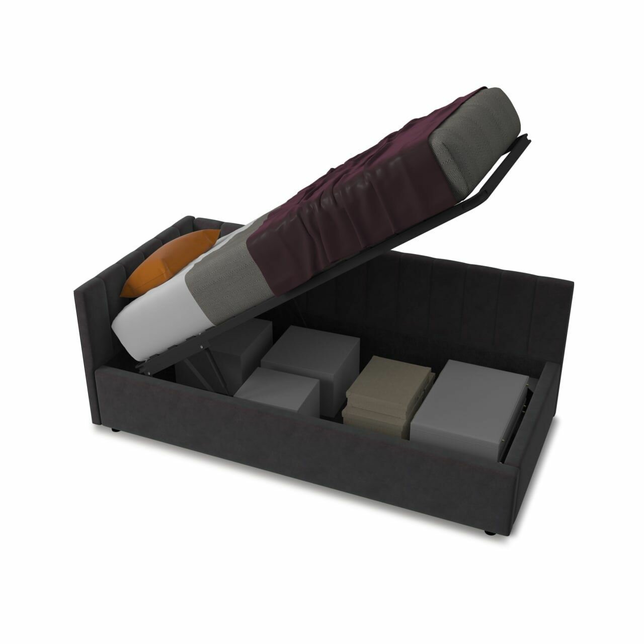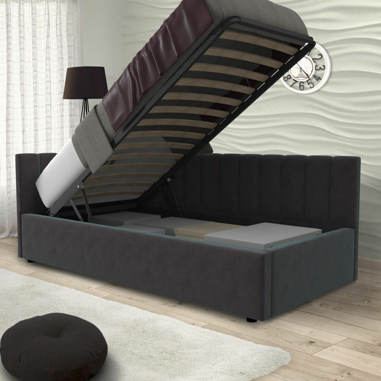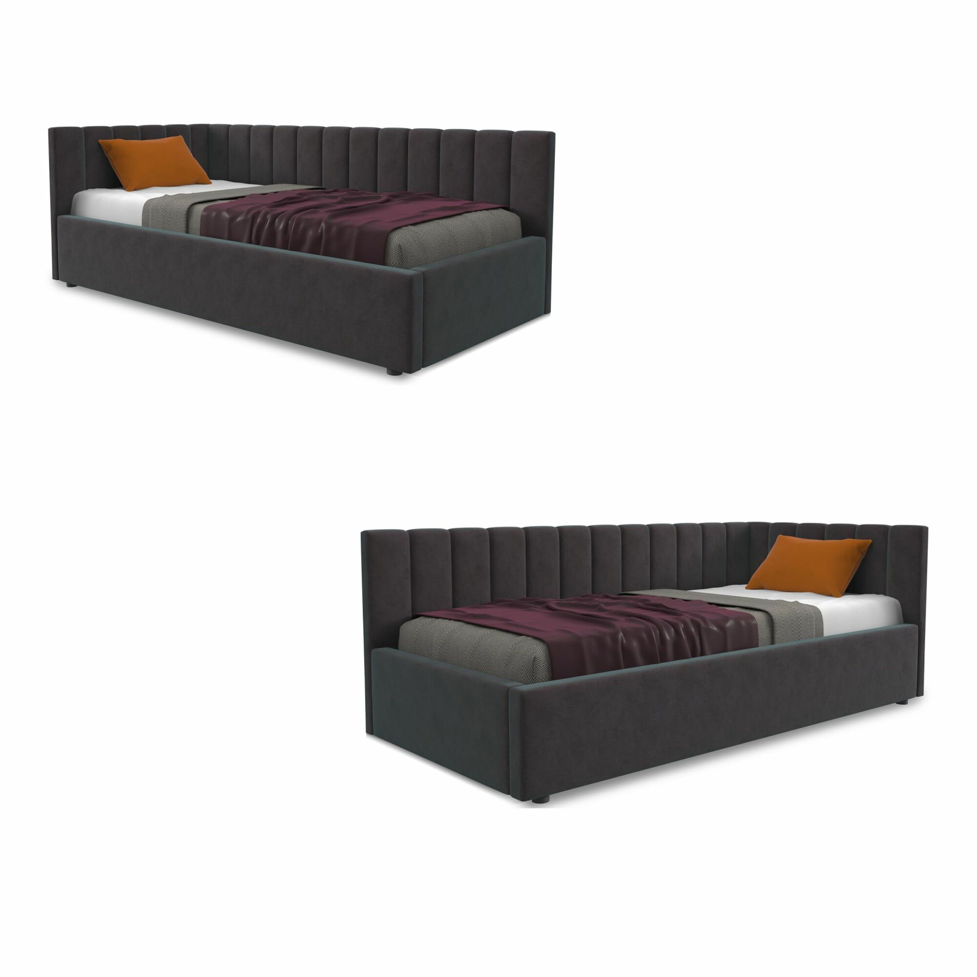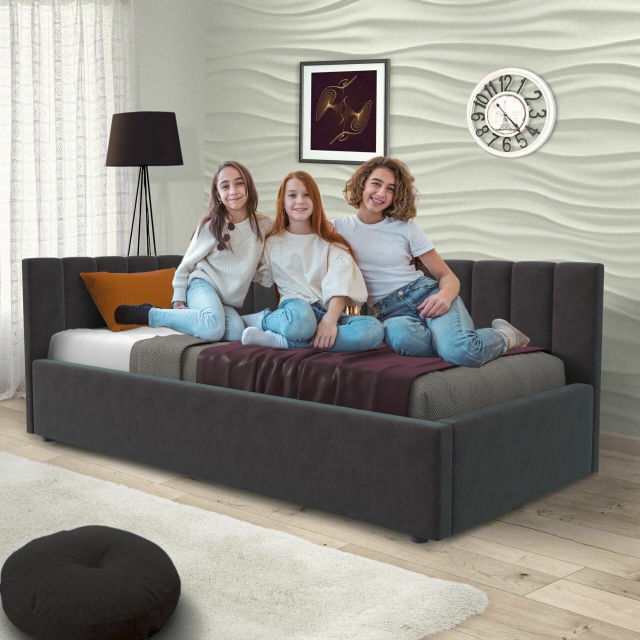 Односпальная угловая кровать c матрасом, Тахта 90х200 с мягкой спинкой "MERLIN-GRAFIT" детская, для подростков, диван