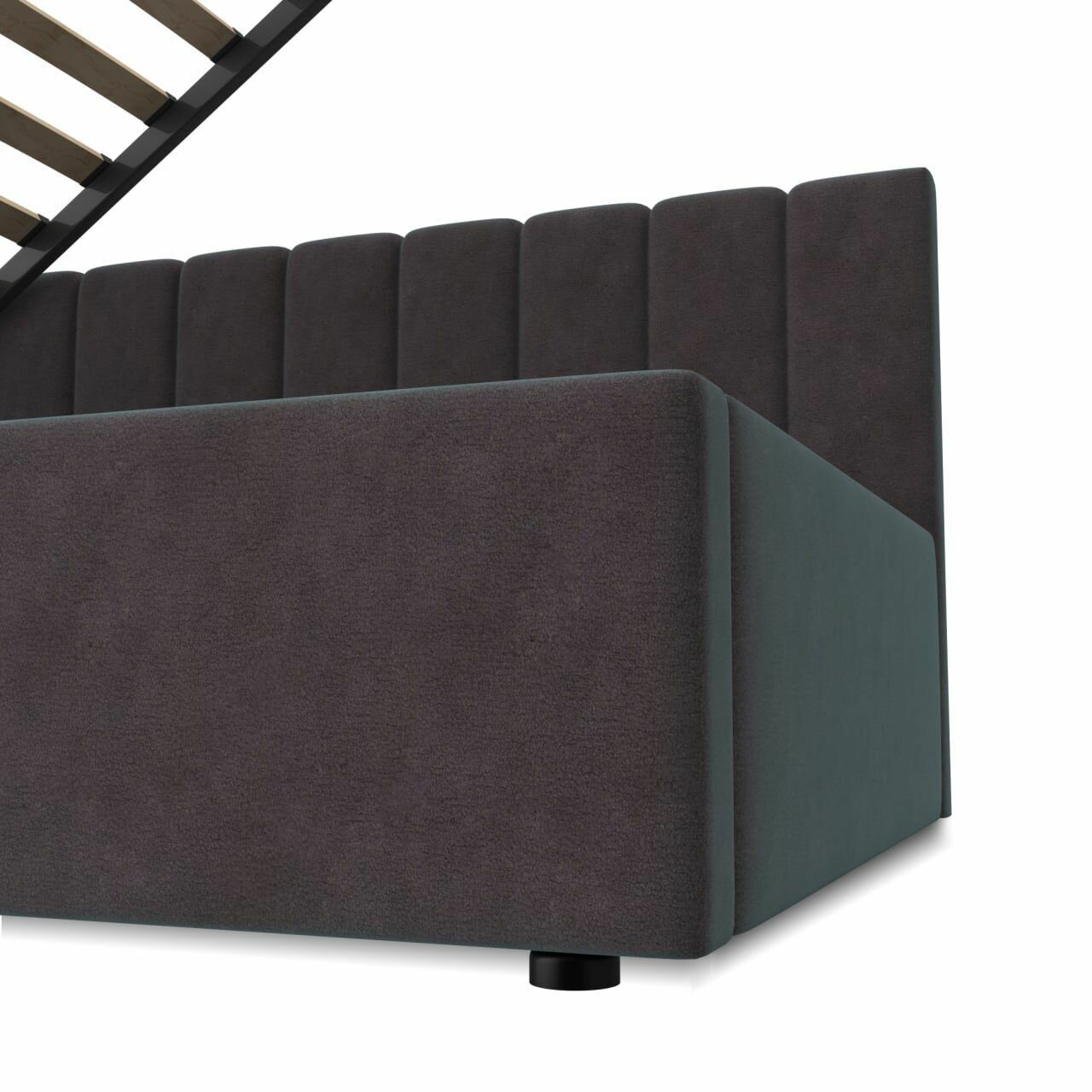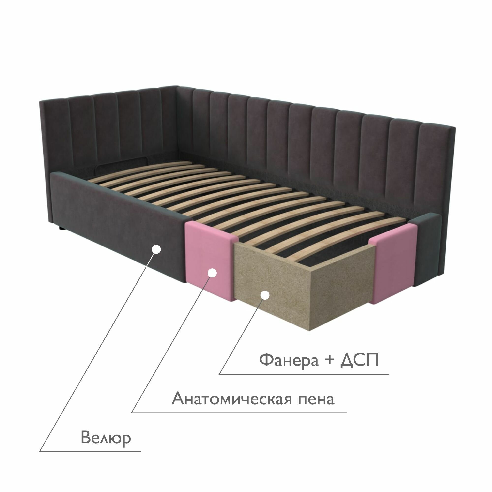 Кровать 90х190 односпальная с матрасом, угловая тахта с мягкой спинкой "MERLIN-GRAFIT" детская, для подростков, диван