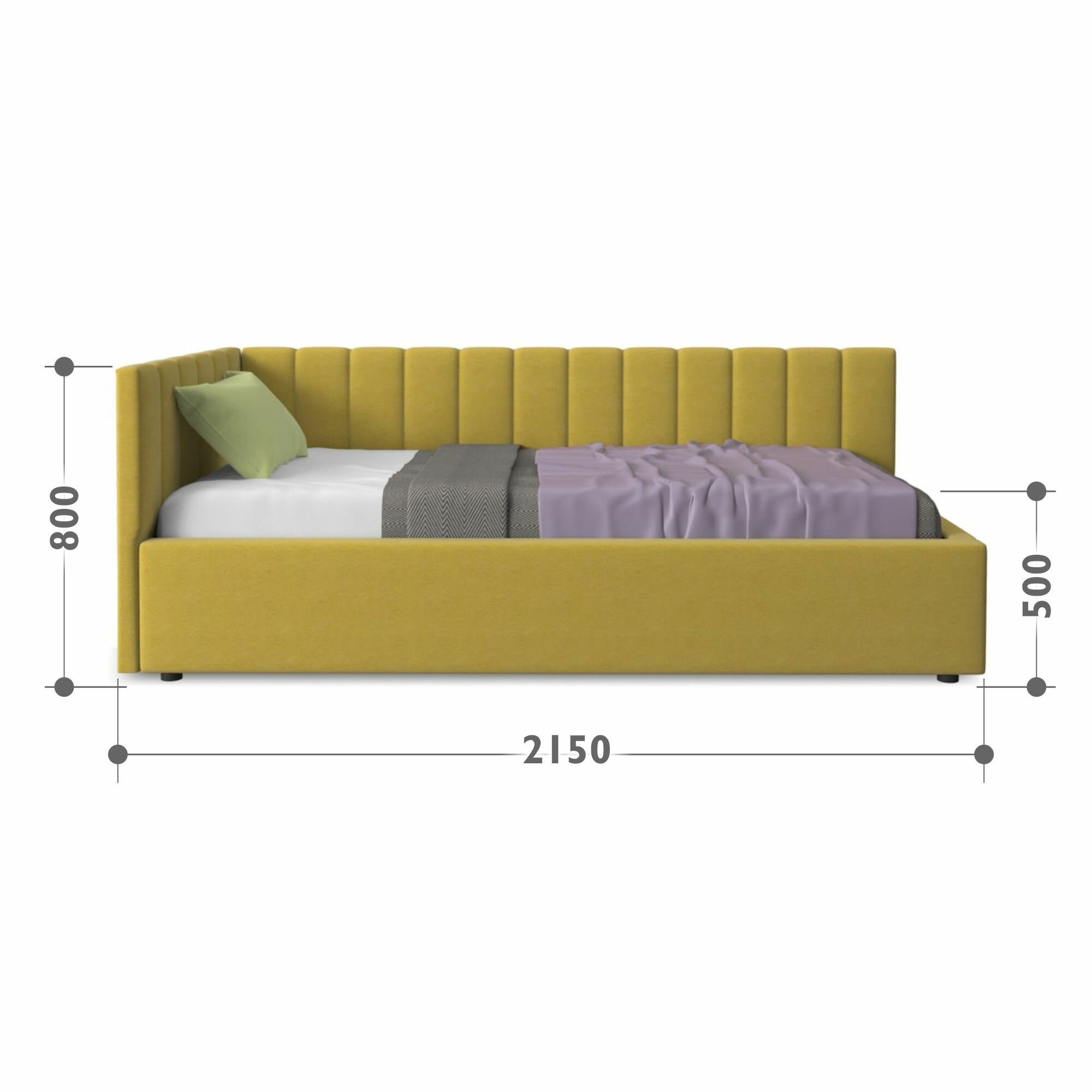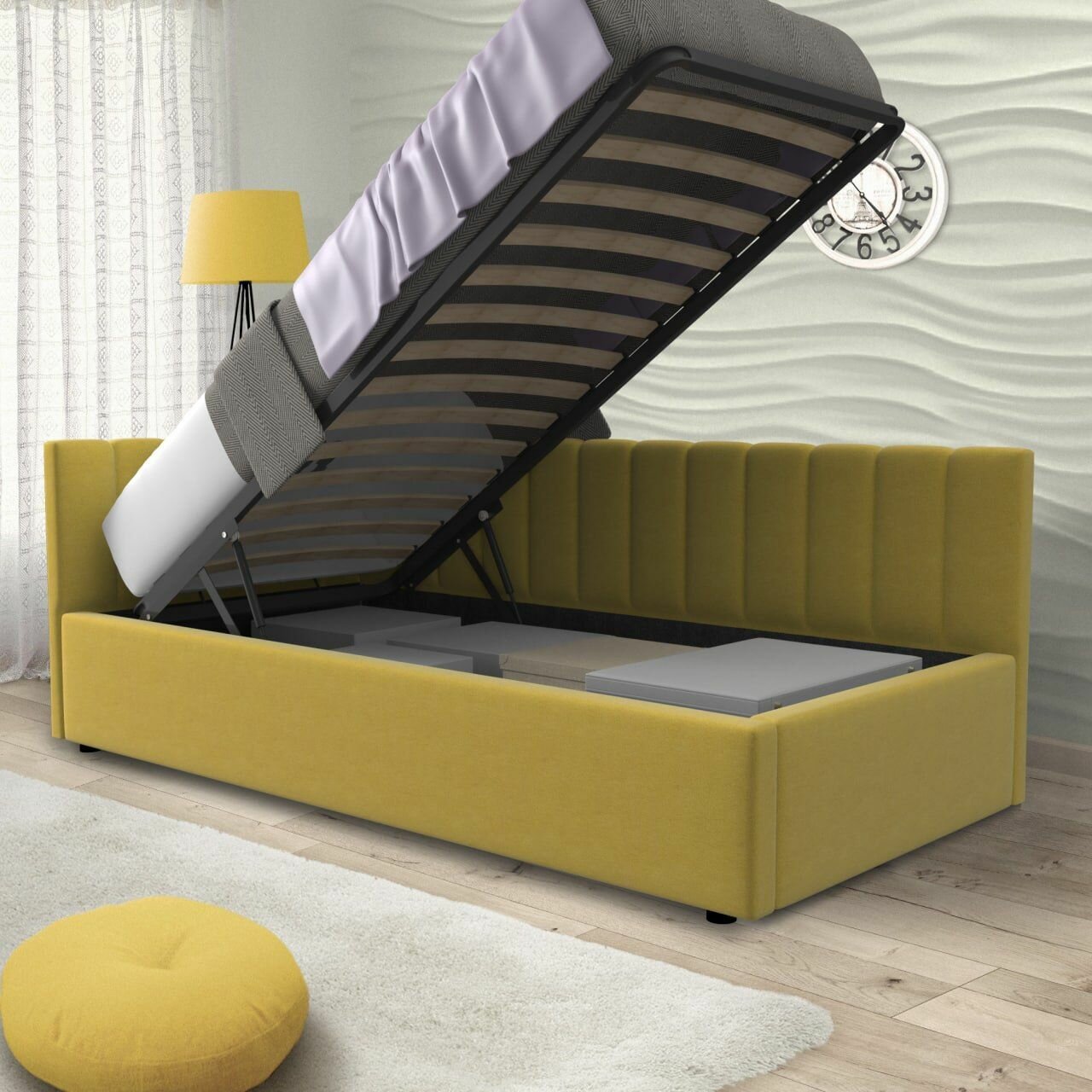 Купить Односпальная угловая кровать с матрасом, Тахта 90х200 с мягкой спинкой "MERLIN-LEMON"
