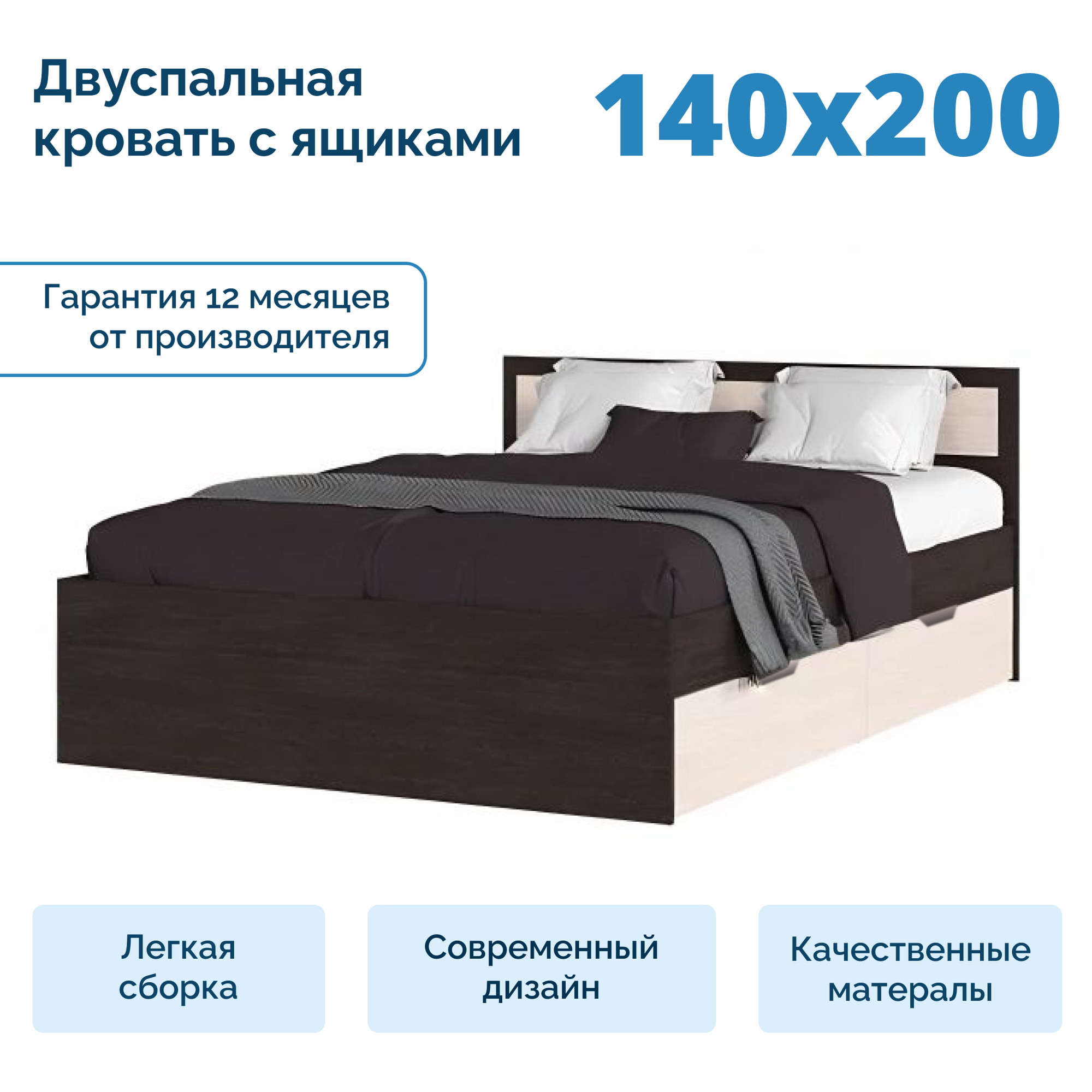 СохранитьДвуспальная Кровать 140х200 С Ящиками Венге/Белфорд - СМ0195 интересное: