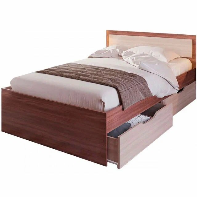 Купить Односпальная Кровать 90х200 С Ящиками шимо темный/шимо светлый - СМ0758