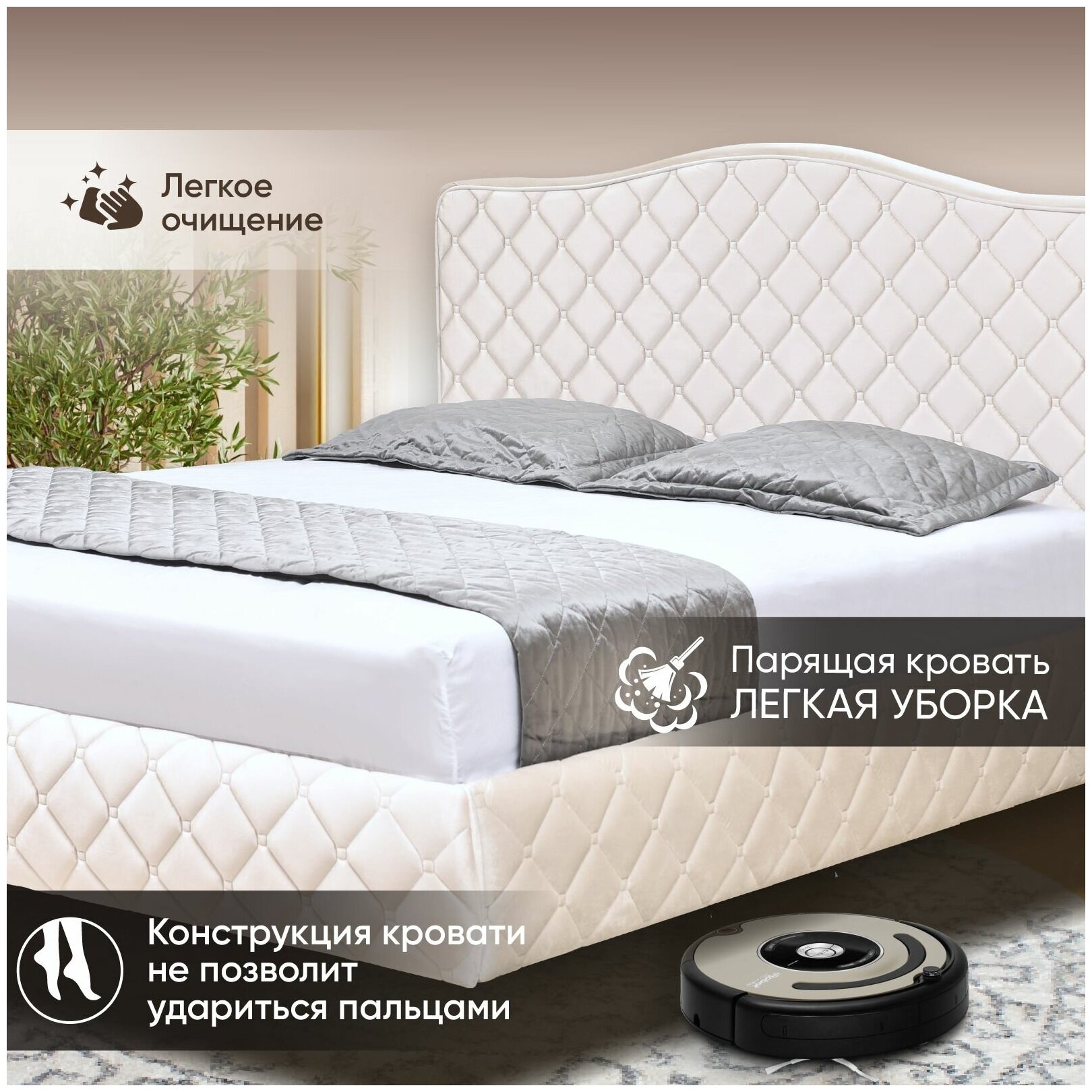Парящая двуспальная кровать 160х200 см Престиж, подъемный механизм, высокие ножки, бархат белый, Ами Мебель