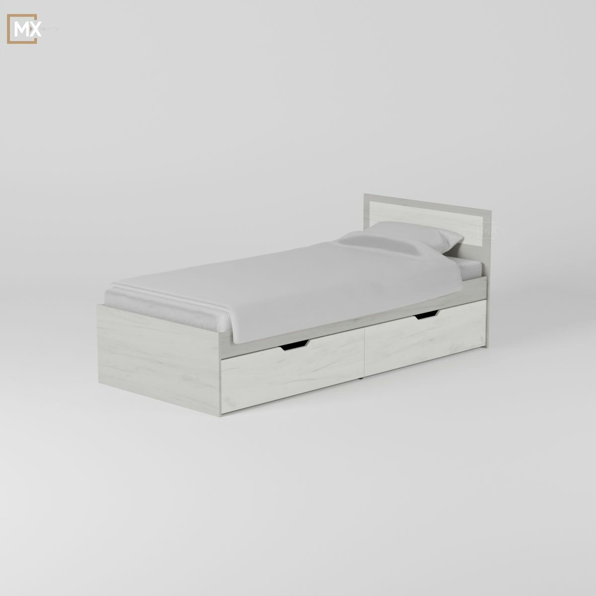 Кровать односпальная Гармония с ящиками (Виктория) 90х200 см, Дуб Белый/Дуб Серый