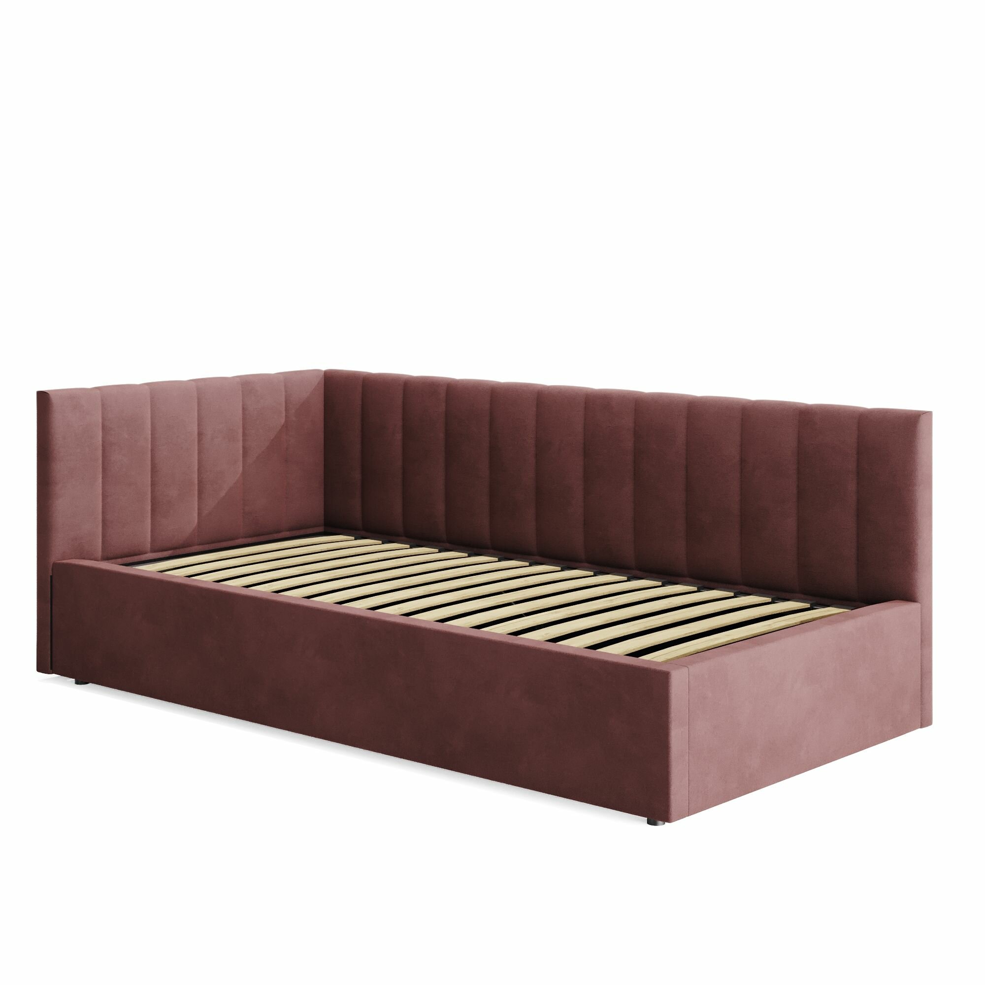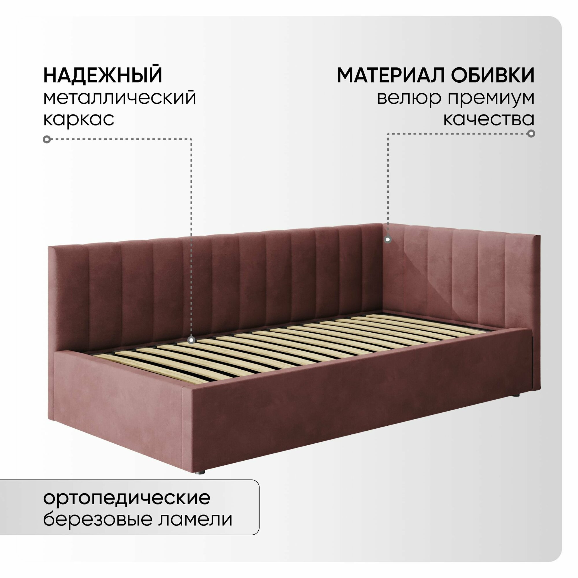 Купить Односпальная угловая кровать 90х200 "Юлия" Терракотовый-Велюр