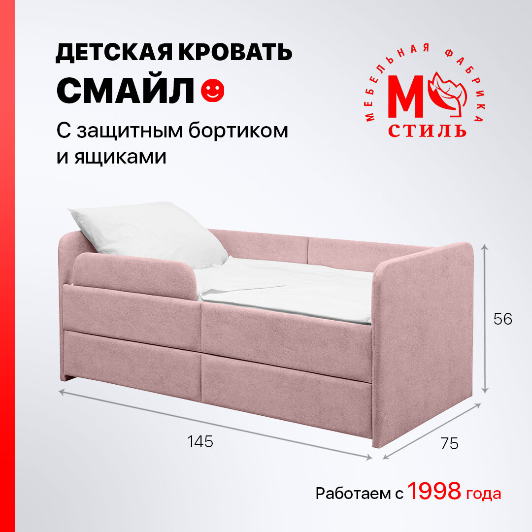 Ниже Вы можете прочитать отзывы на Кровать детская Смайл розовая с защитным бортиком и ящиками для хранения 1400*700, ознакомится с подробными характеристиками, посмотреть интересные обзоры и фотографии на Кровать детская Смайл розовая с защитным бортиком и ящиками для хранения 1400*700.