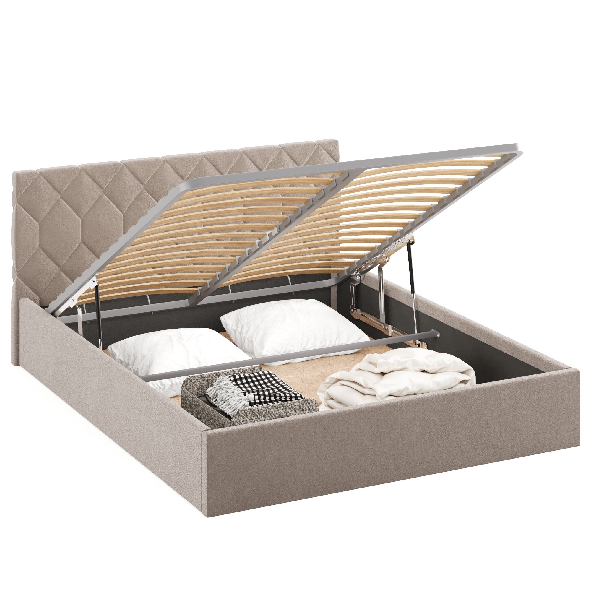 Кровать 160х200 c подъемным механизмом и местом для хранения Техас светло-бежевый