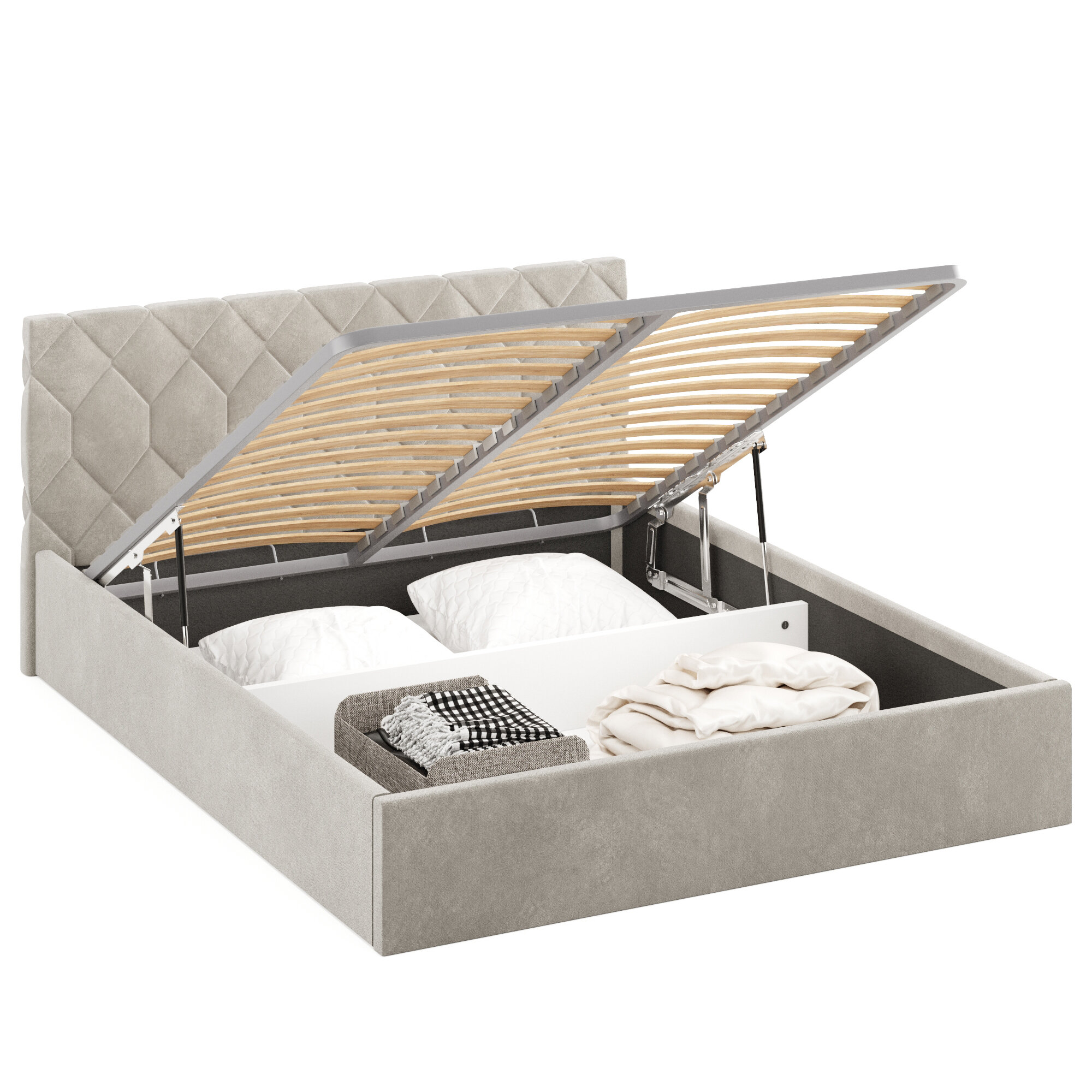 Кровать 160х200 c подъемным механизмом и местом для хранения Техас светло-бежевый