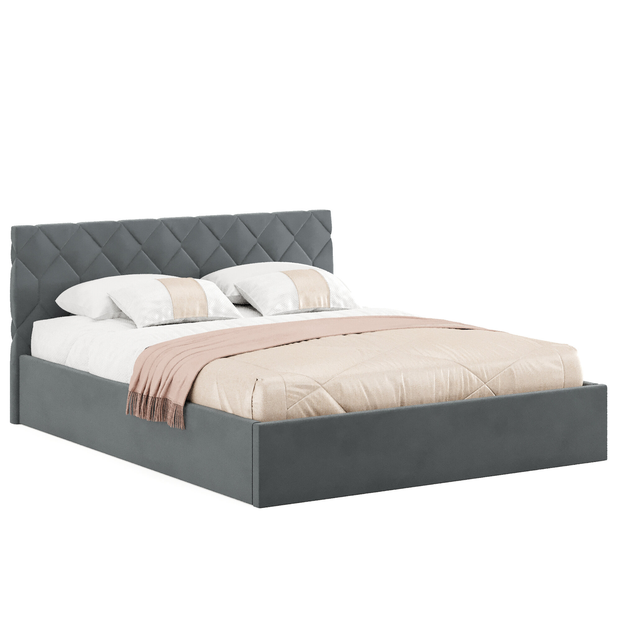 Кровать двуспальная Техас 140х200 с подъемным механизмом и ящиком для белья, велюр темно-серый