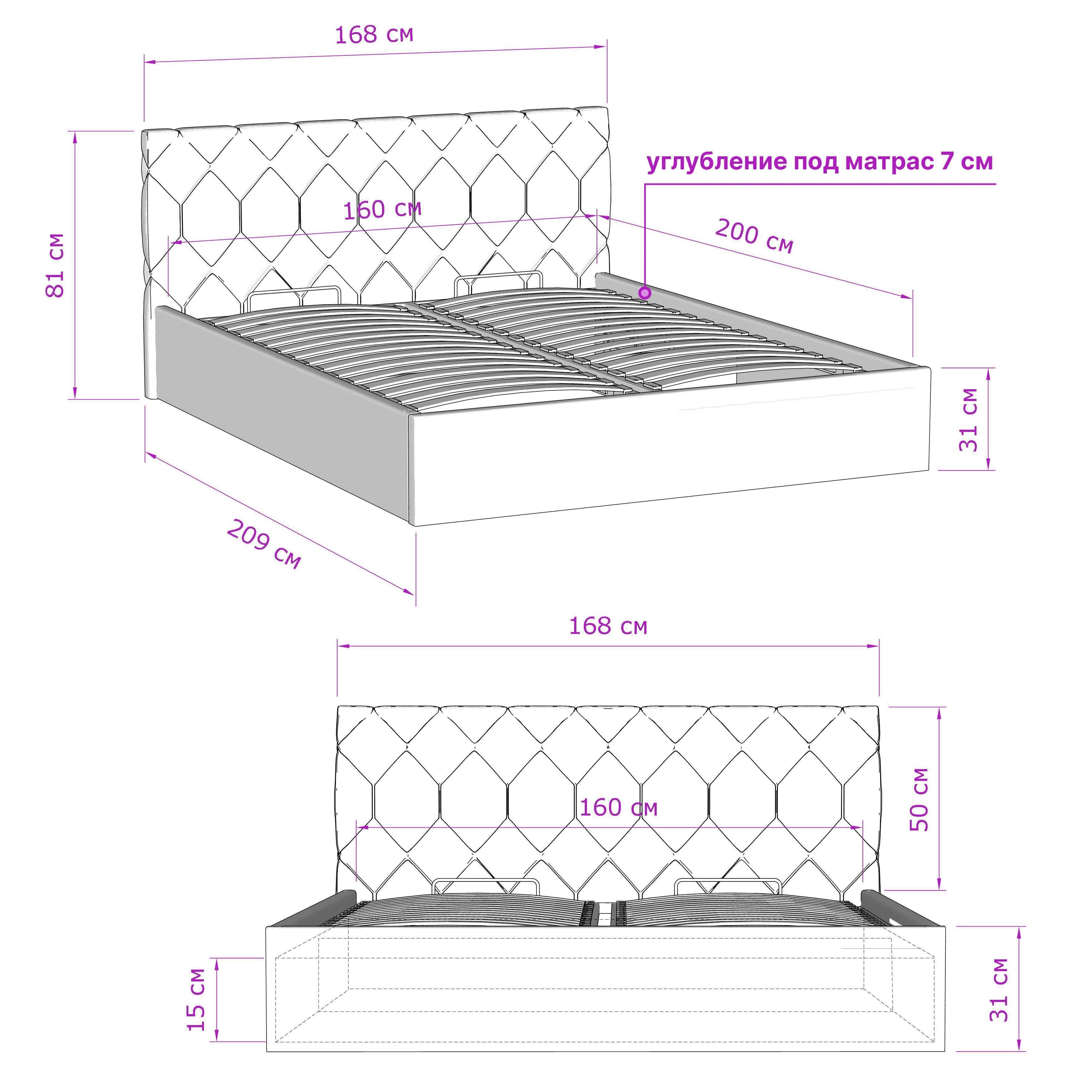 | Особенности | мягкое изголовье, с подъемным механизмом, с ящиком для белья |