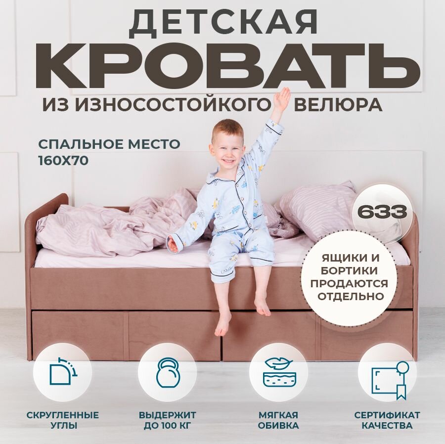 Кровать детская подростковая односпальная 160х70 бежевый с двумя ящиками и бортиком в комплекте