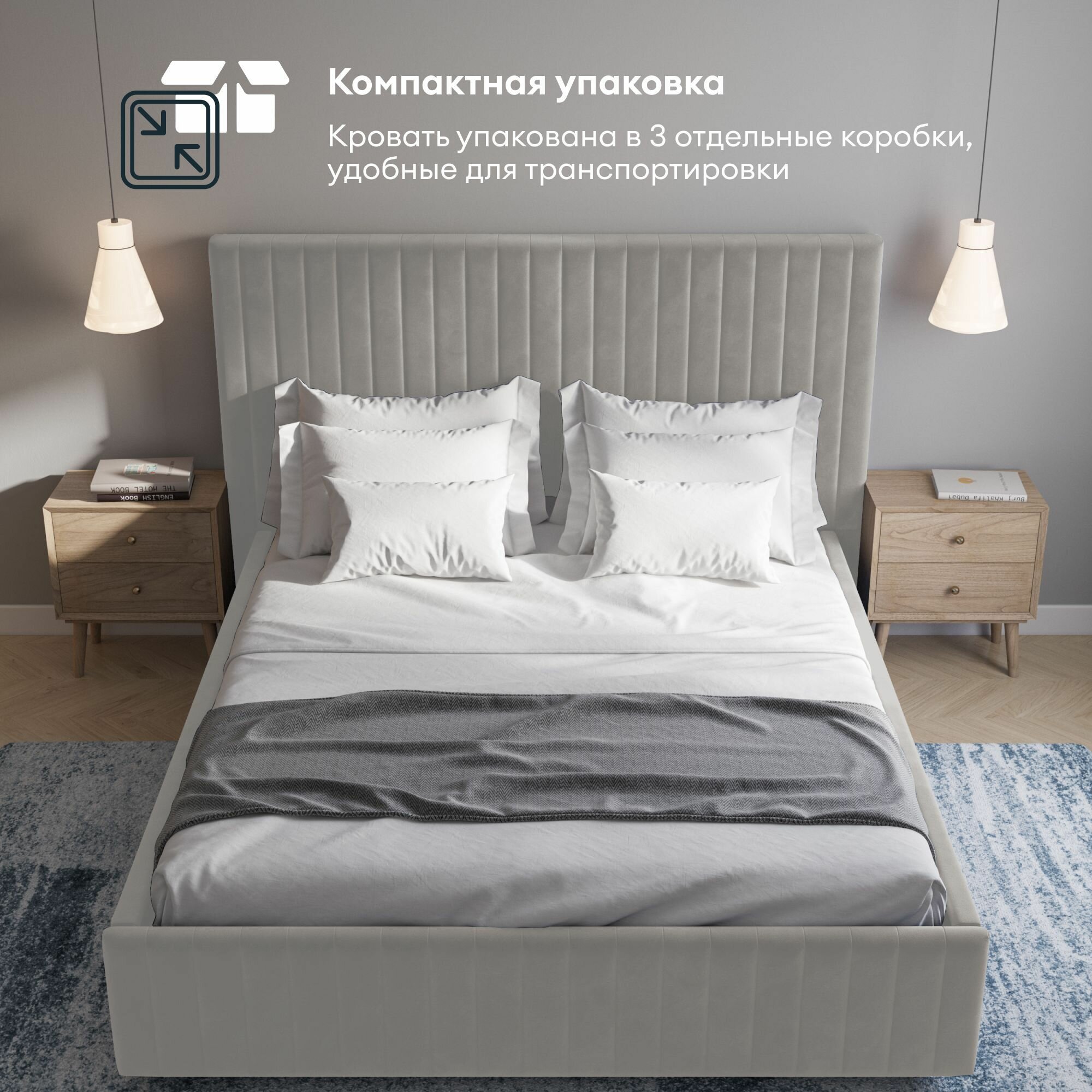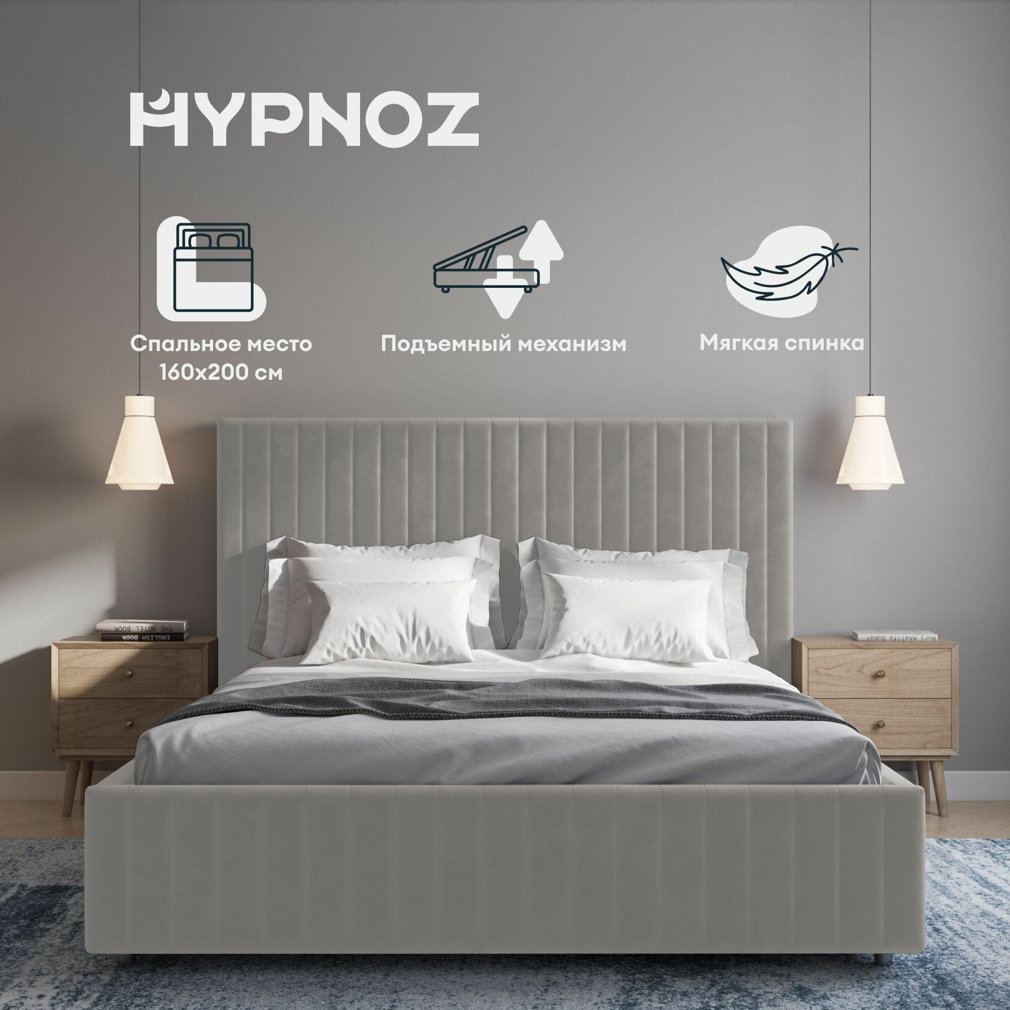 Кровать двуспальная HYPNOZ Salamanca 160х200, с подъёмным механизмом, Светло-серая