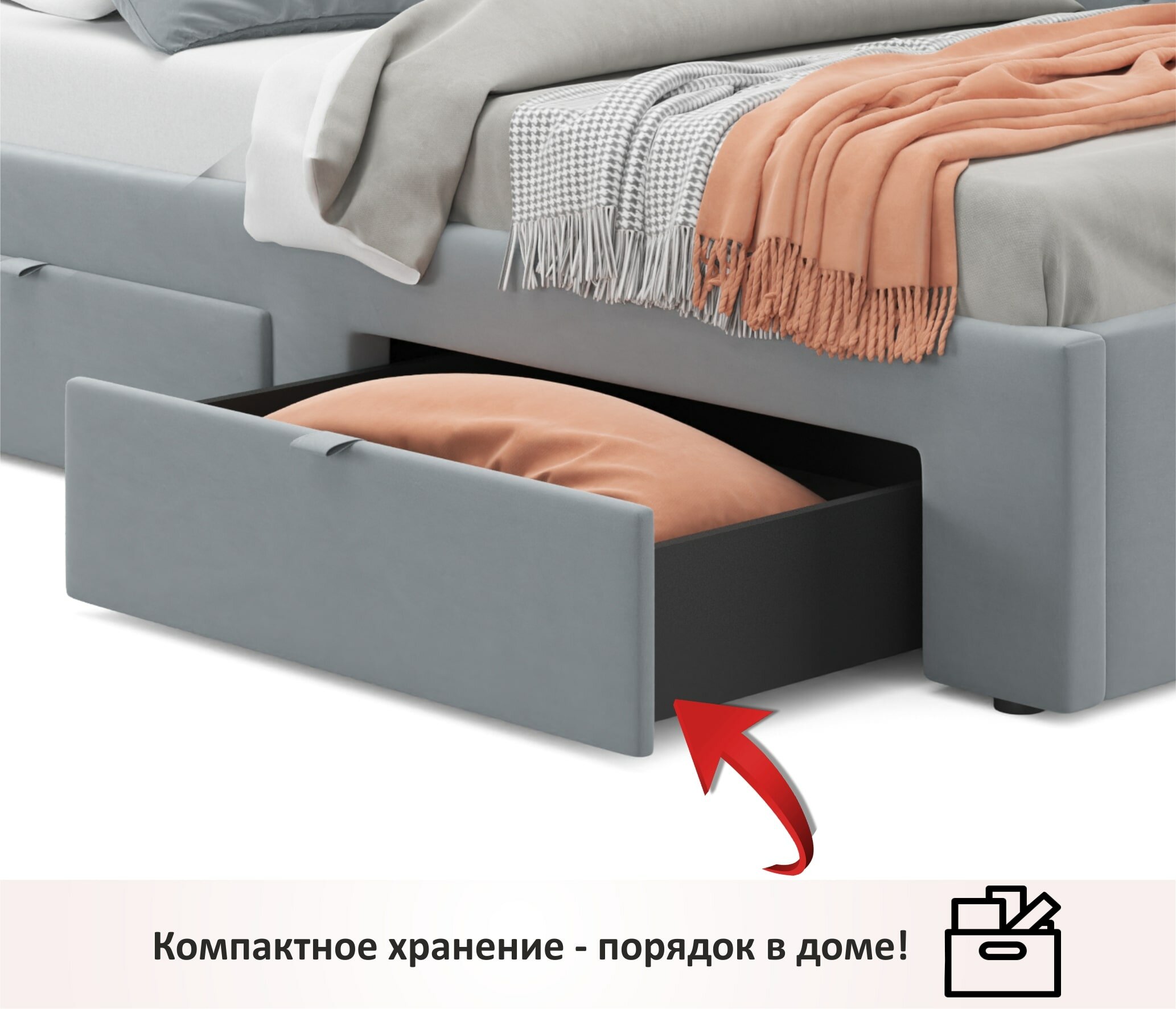 Односпальная кровать-тахта угловая Afelia 900 серая Zeppelin ортопед 90х200, мягкая из велюра, с ящиками