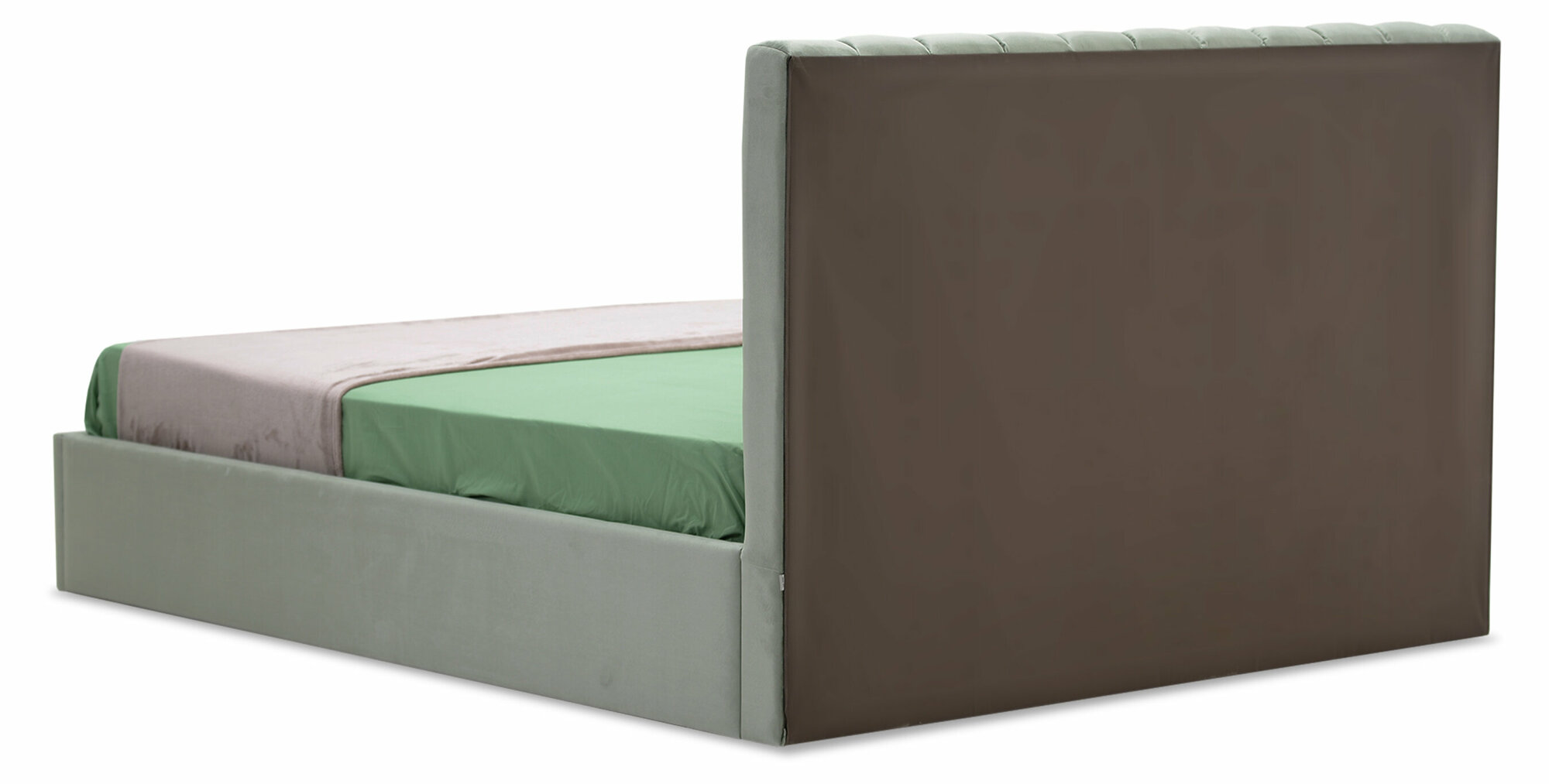 Двуспальная кровать Страйп 180х200 с подъемным механизмом, Ладья, с мягким изголовьем для дома и спальни, ортопедическое основание, ящик для белья, Сonfetti Olive