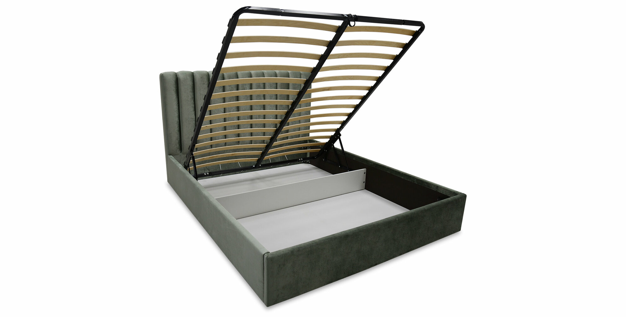 Двуспальная кровать Страйп 160х200 с подъемным механизмом, Ладья, с мягким изголовьем для дома и спальни, ортопедическое основание, ящик для белья, Сonfetti Olive