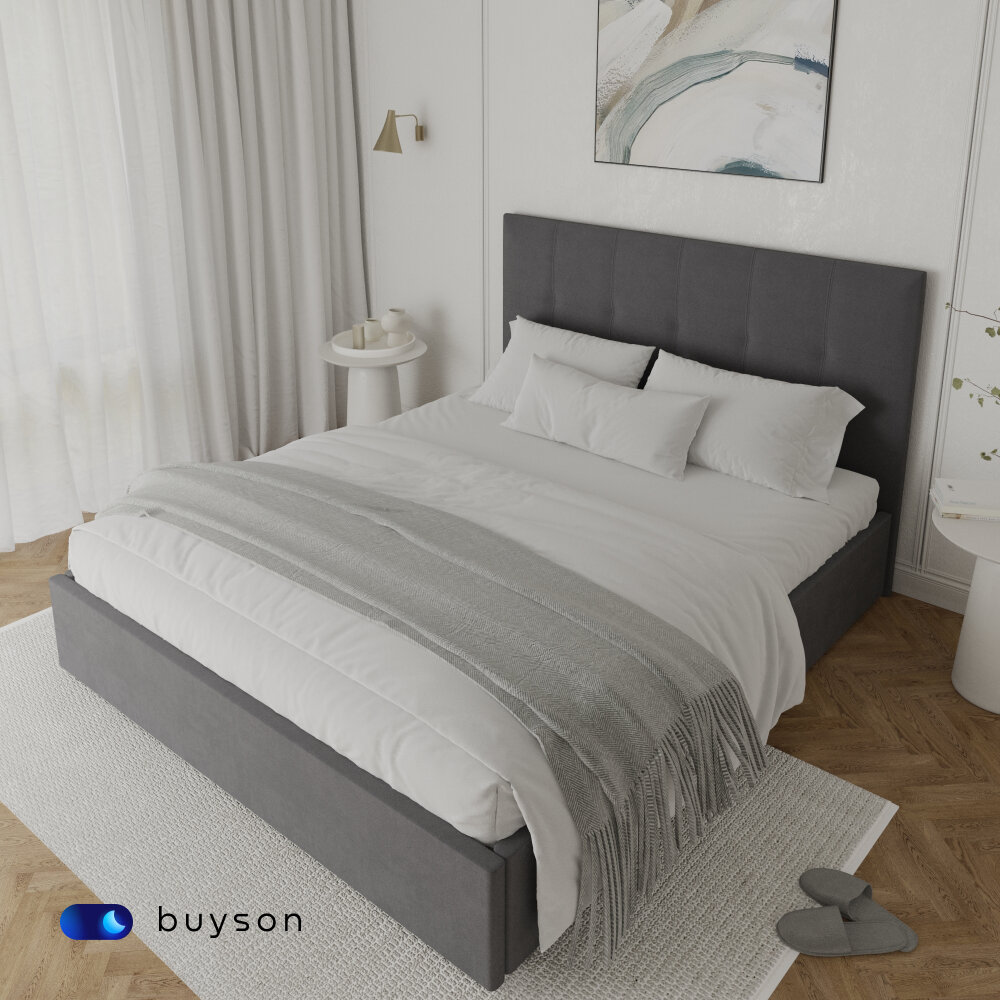 Двуспальная кровать buyson BuyDream 200х180, серая, рогожка