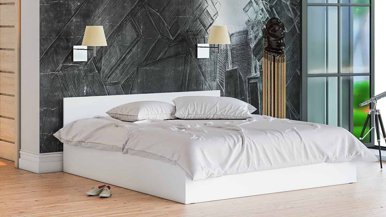 Кровать двуспальная Мори 1800 цвет белый, ШхГхВ 183,5х203,5х70 см, сп. м. 1800х2000 мм, без матраса, основание есть