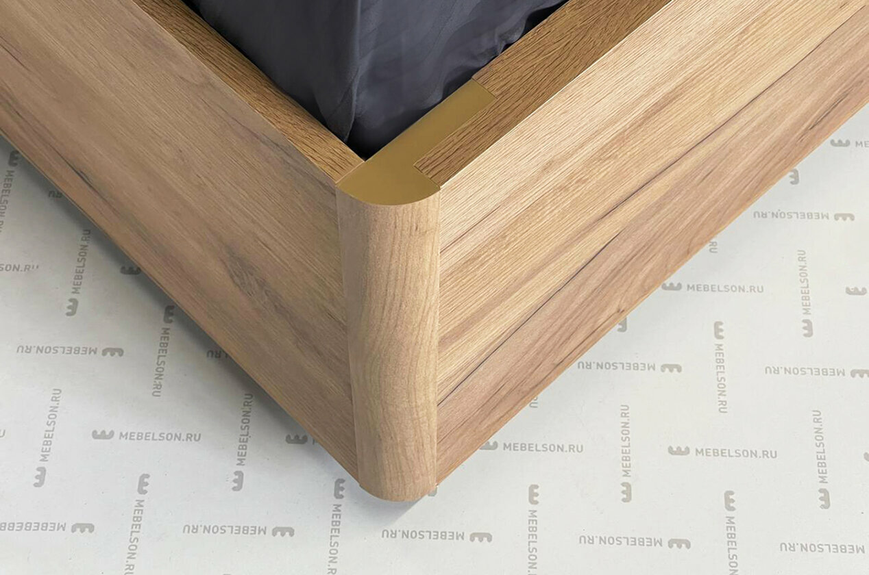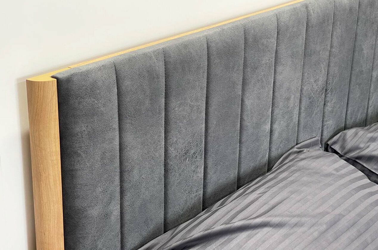 Кровать двуспальная с подъемным механизмом Адам, 160х200 см, велюр Грей Алькантара, ЛДСП Дуб крафт золотой
