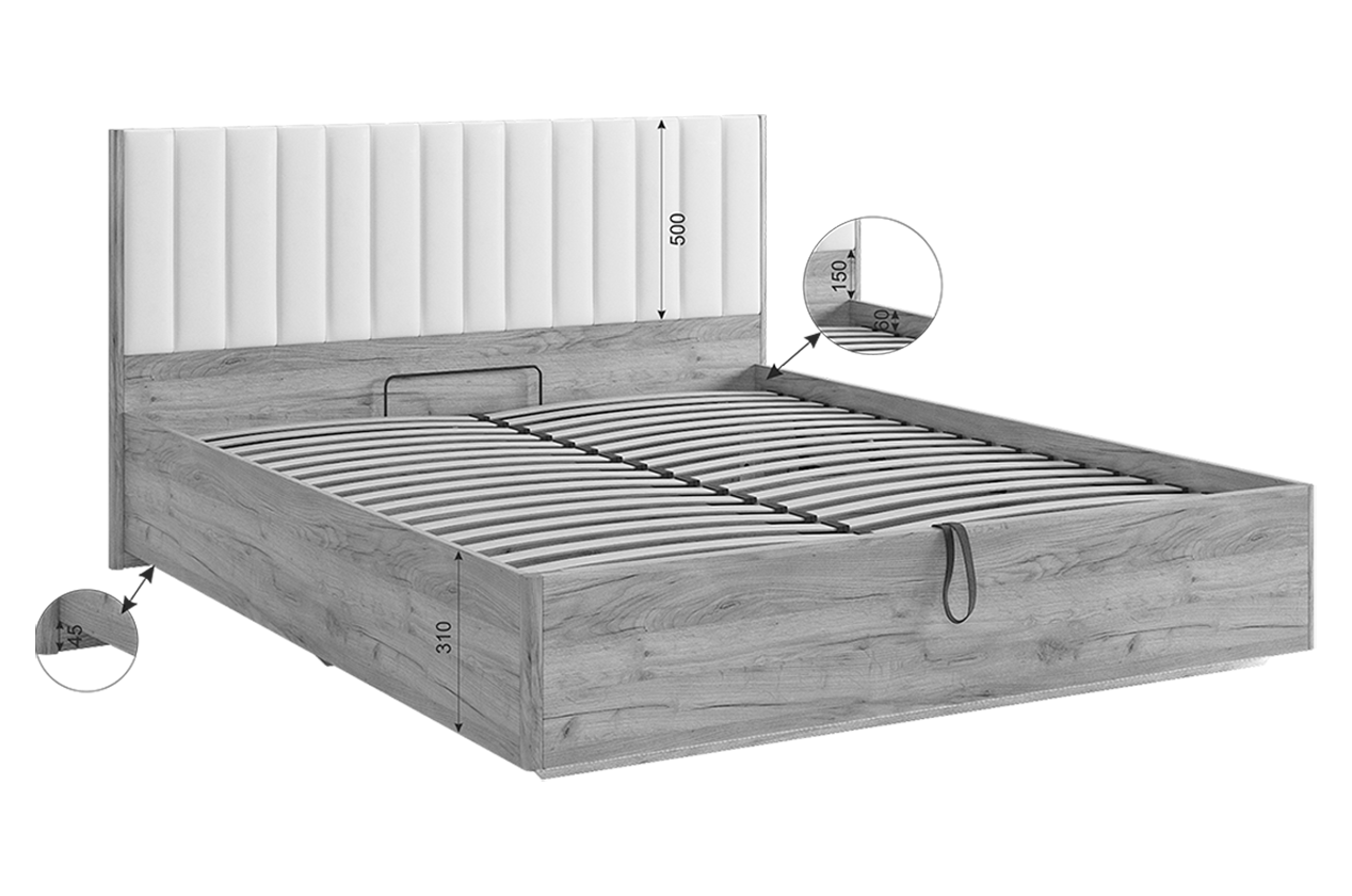 | Особенности | мягкое изголовье, основание под матрас, с подъемным механизмом |