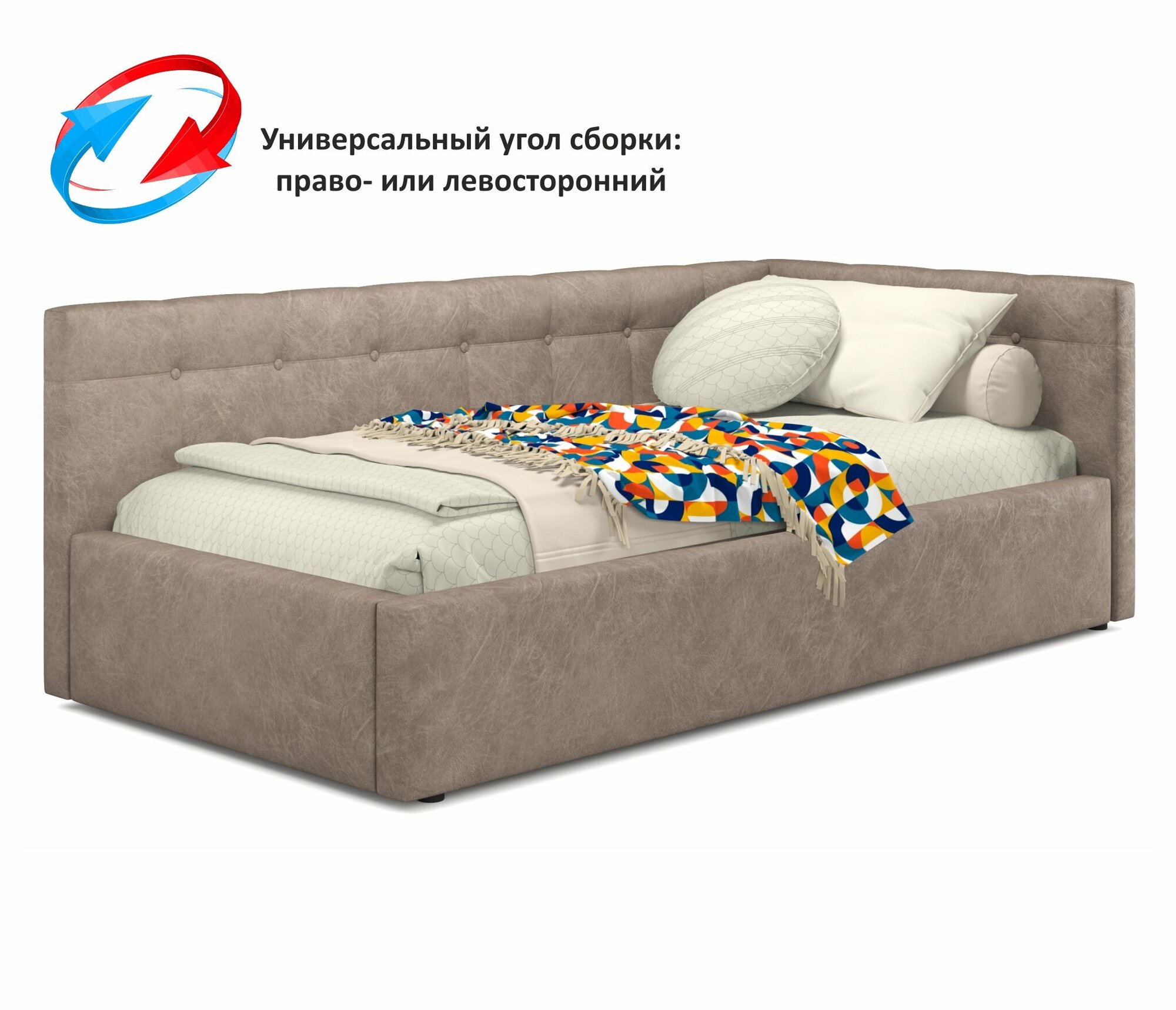 Односпальная кровать-тахта Bonna 900 кожа брауни угловая Zeppelin, с подъемным механизмом, 90х200, мягкая из экокожи, с ящиком для хранения
