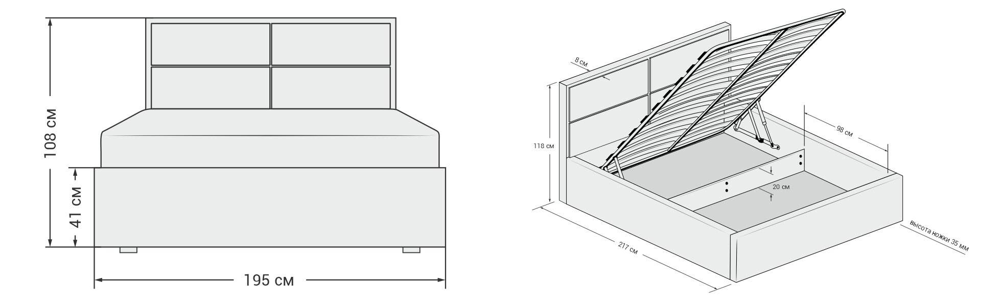 | Особенности | мягкое изголовье, с подъемным механизмом, с ящиком для белья |