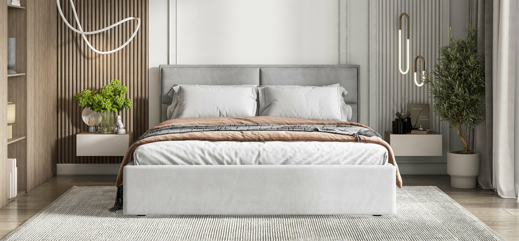 Двуспальная кровать MILA, с подъемным механизмом, велюр Monolit, цвет серый, 180х200 см