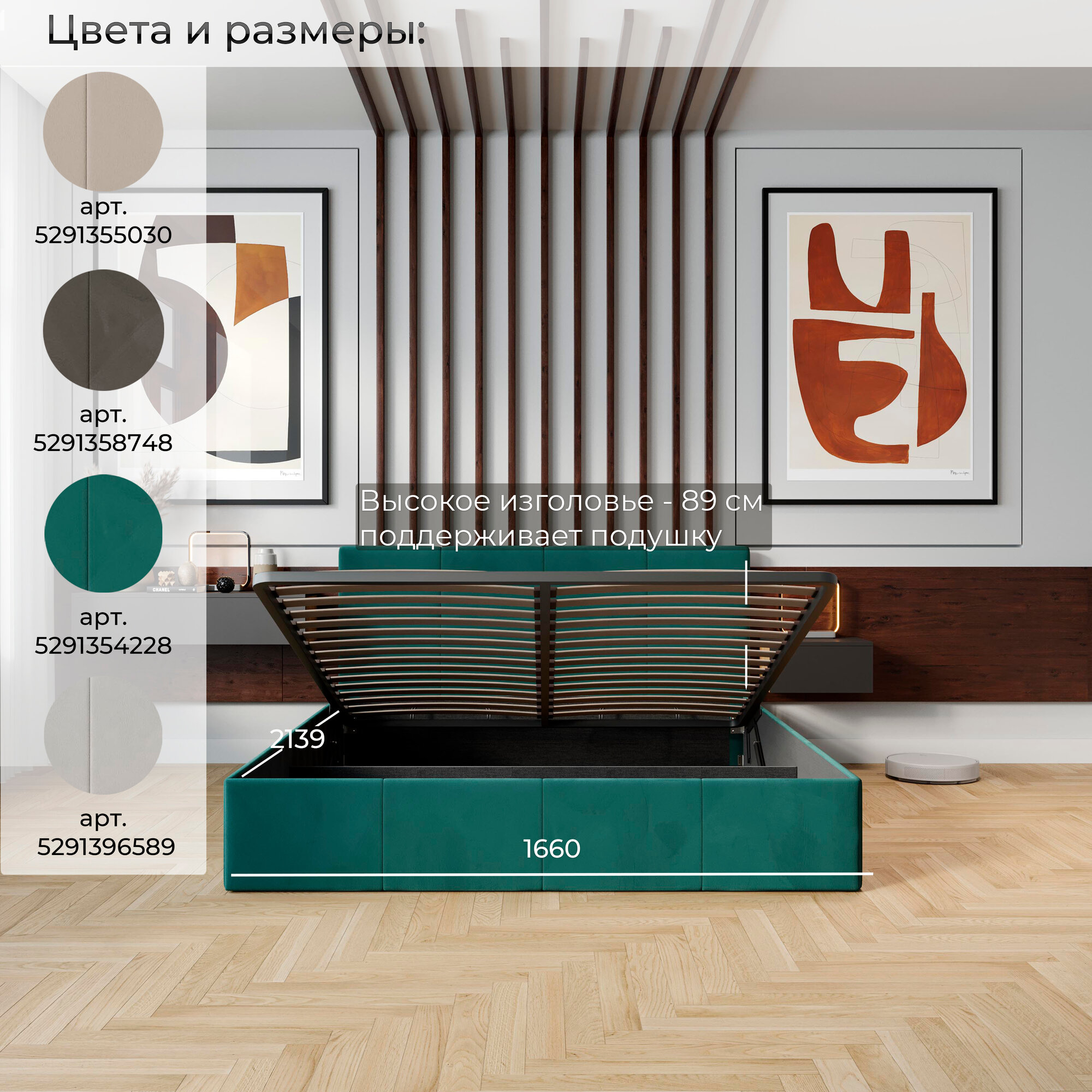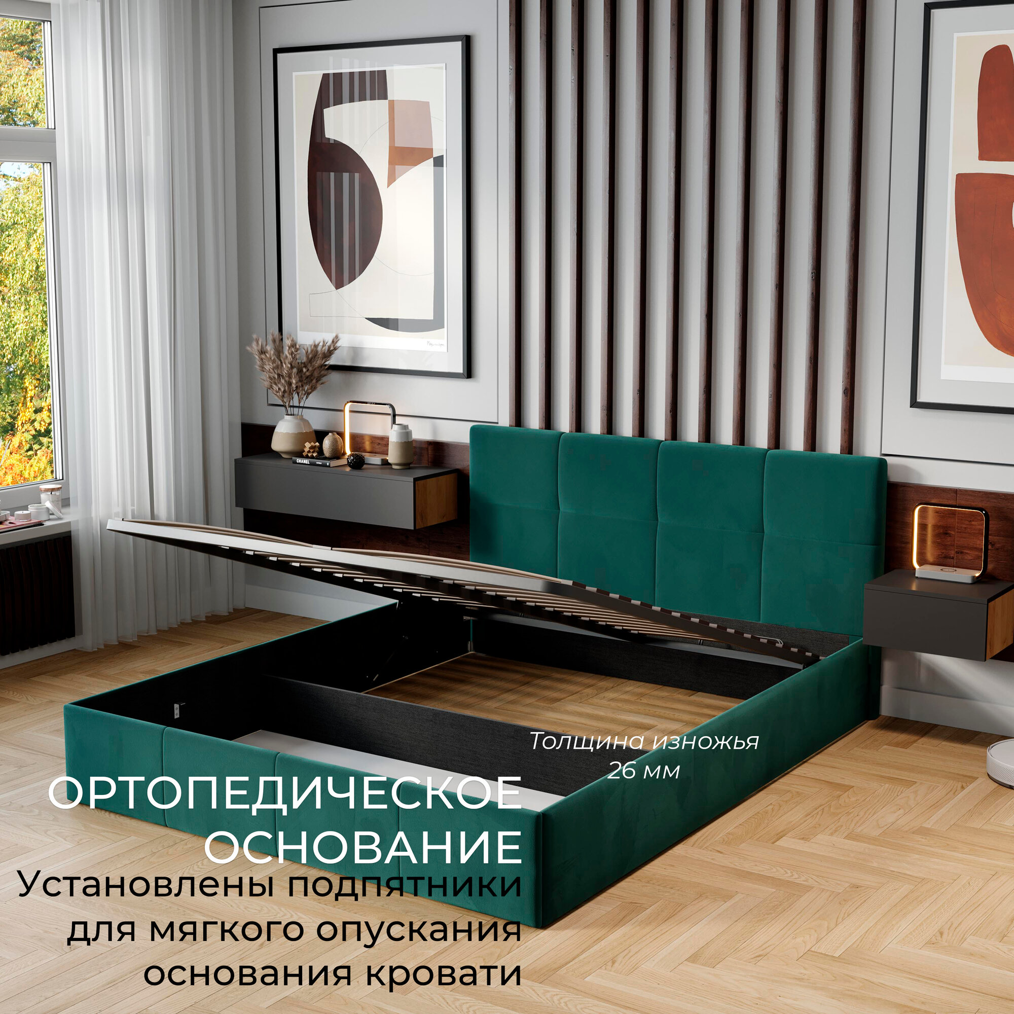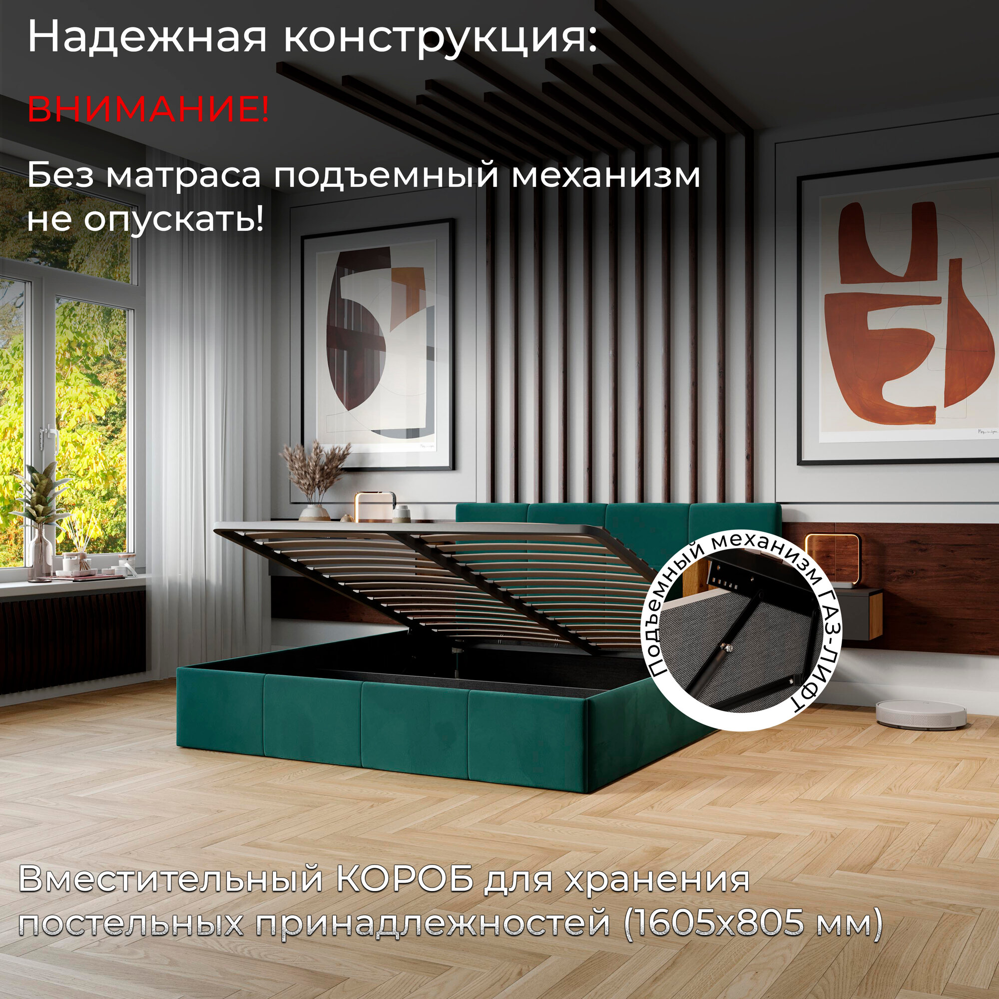 СохранитьКровать двуспальная ТриЯ 160х200 с подъемным механизмом, Мона, Велюр Confetti Izumrud интересное: