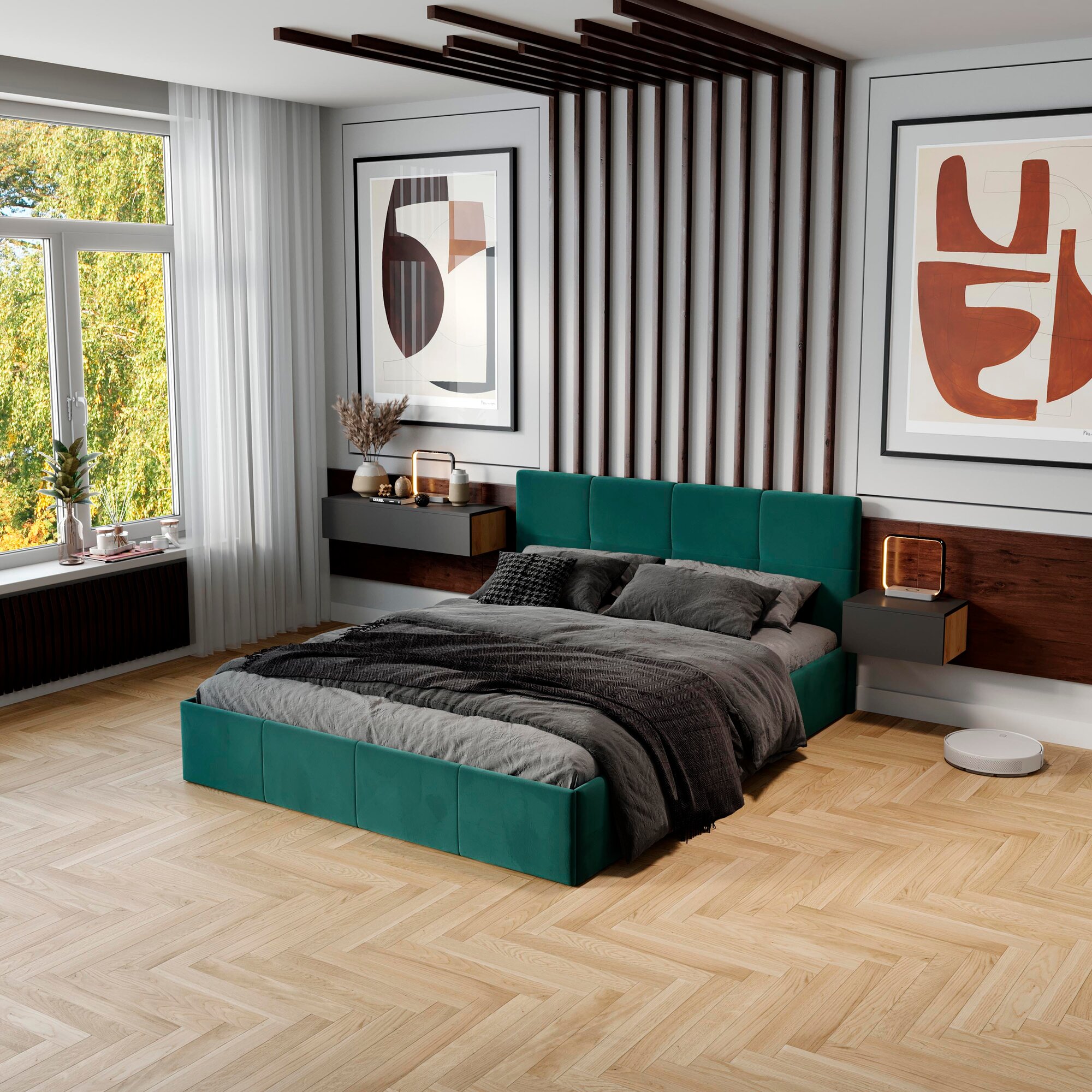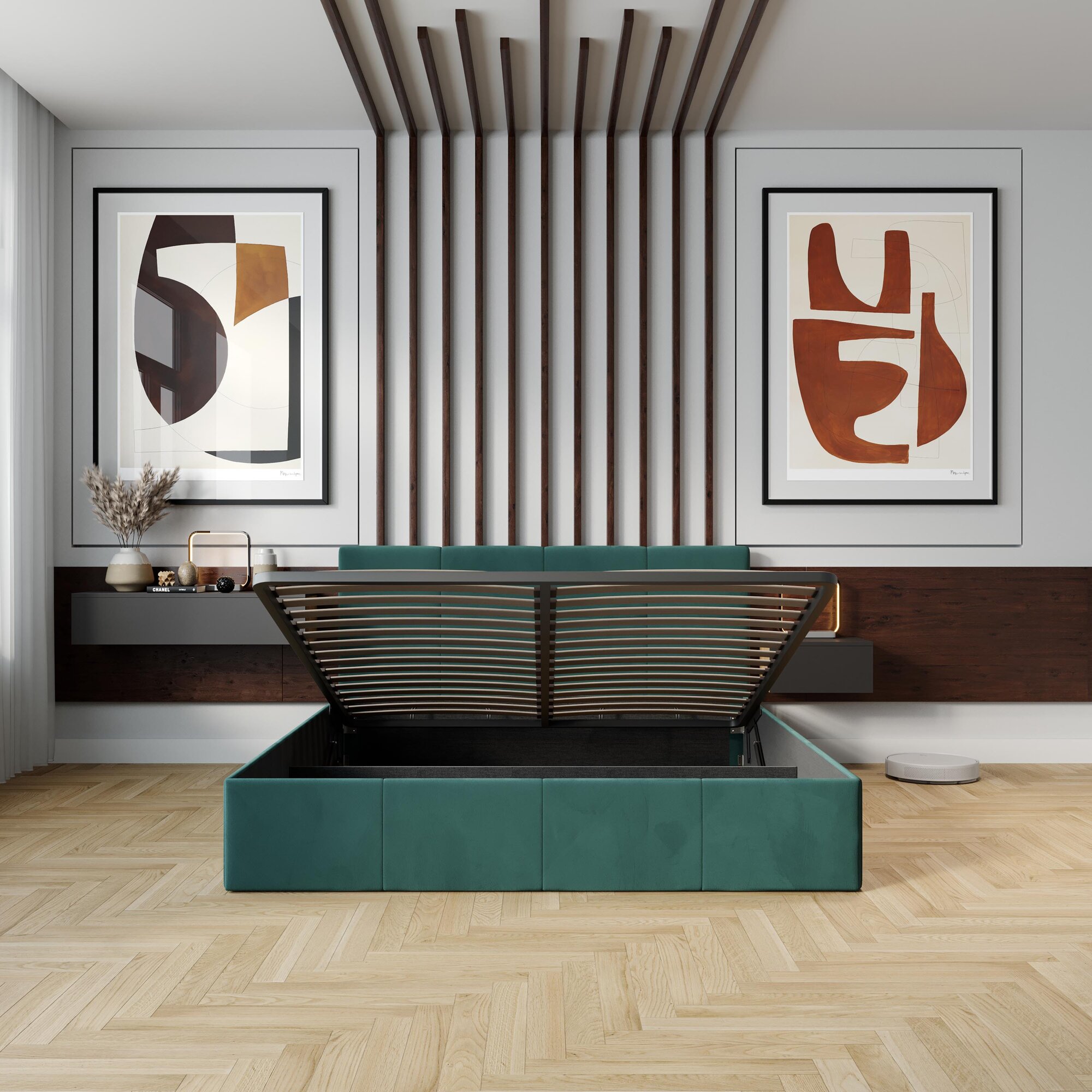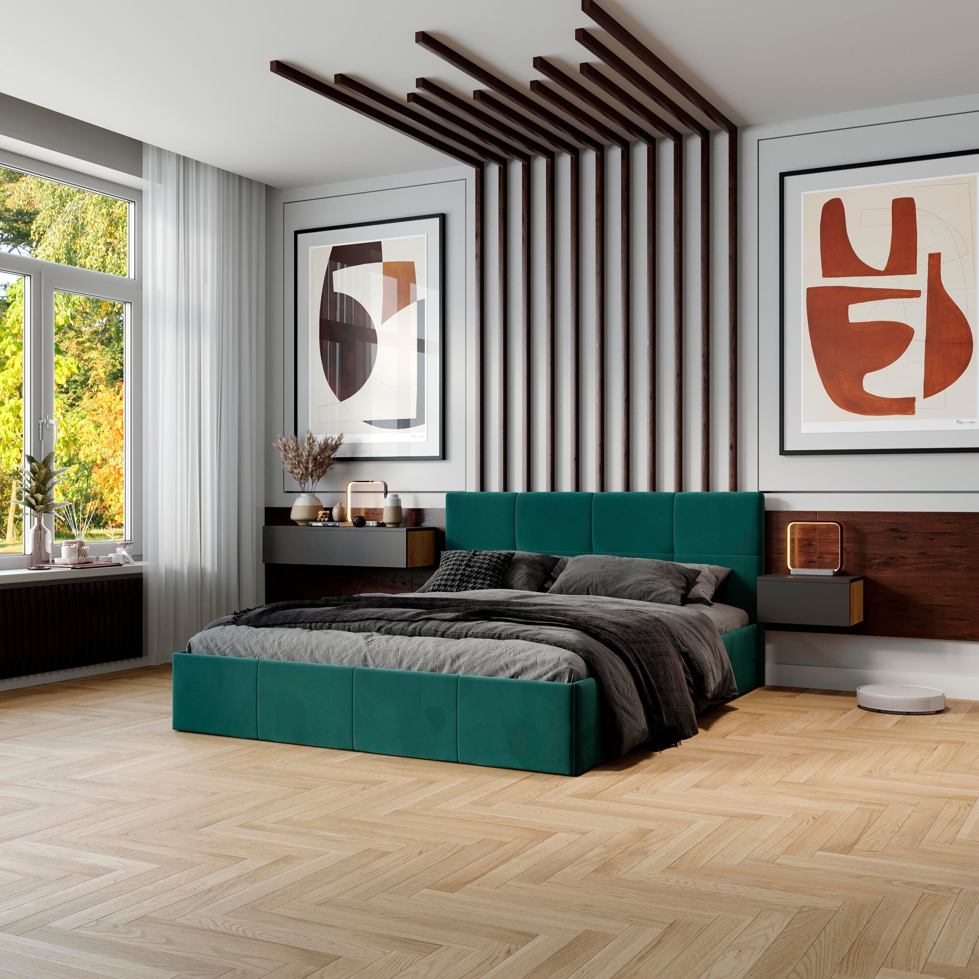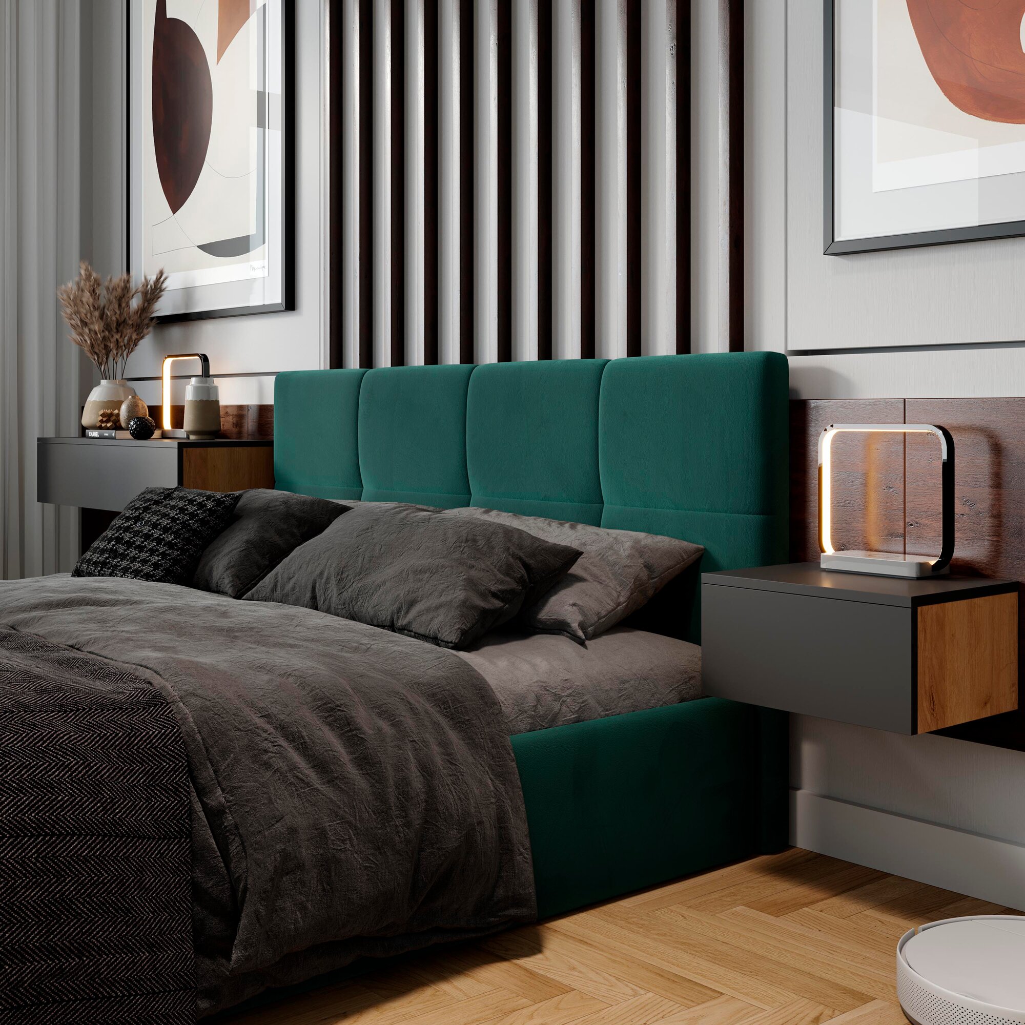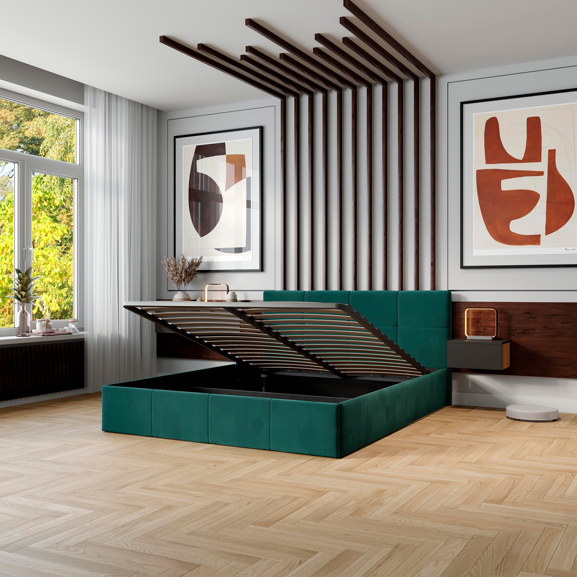 Кровать двуспальная FRENT 160х200 с подъемным механизмом, Мона, Велюр Confetti Izumrud
