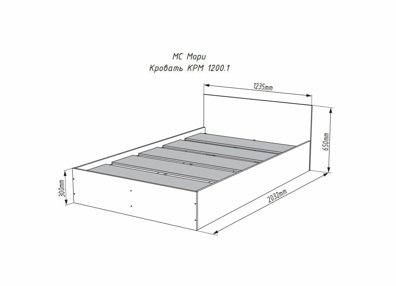 Кровать ДСВ Мебель Мори КРМ 1200.1/1 (МП/3) Белый Размеры: Высота 650мм Глубина 2032мм Ширина 1235мм