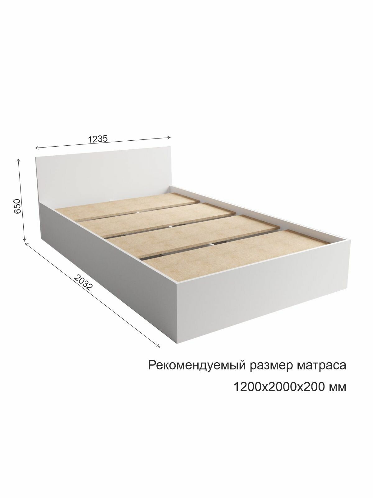Кровать ДСВ Мебель Мори КРМ 1200.1/1 (МП/3) Белый Размеры: Высота 650мм Глубина 2032мм Ширина 1235мм