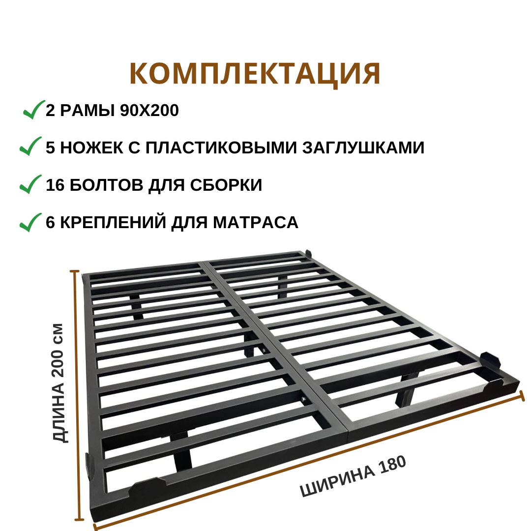 Кровать двуспальная, 180х200 см, парящая, металлическая, без крепления К стене, черная, SKY LOFT