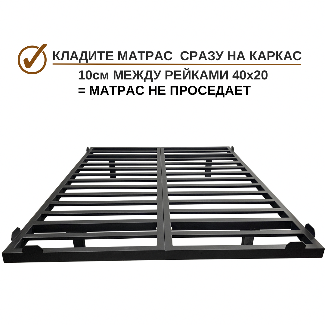 Кровать двуспальная, 140х200 см, парящая, металлическая, без крепления К стене, черная, SKY LOFT