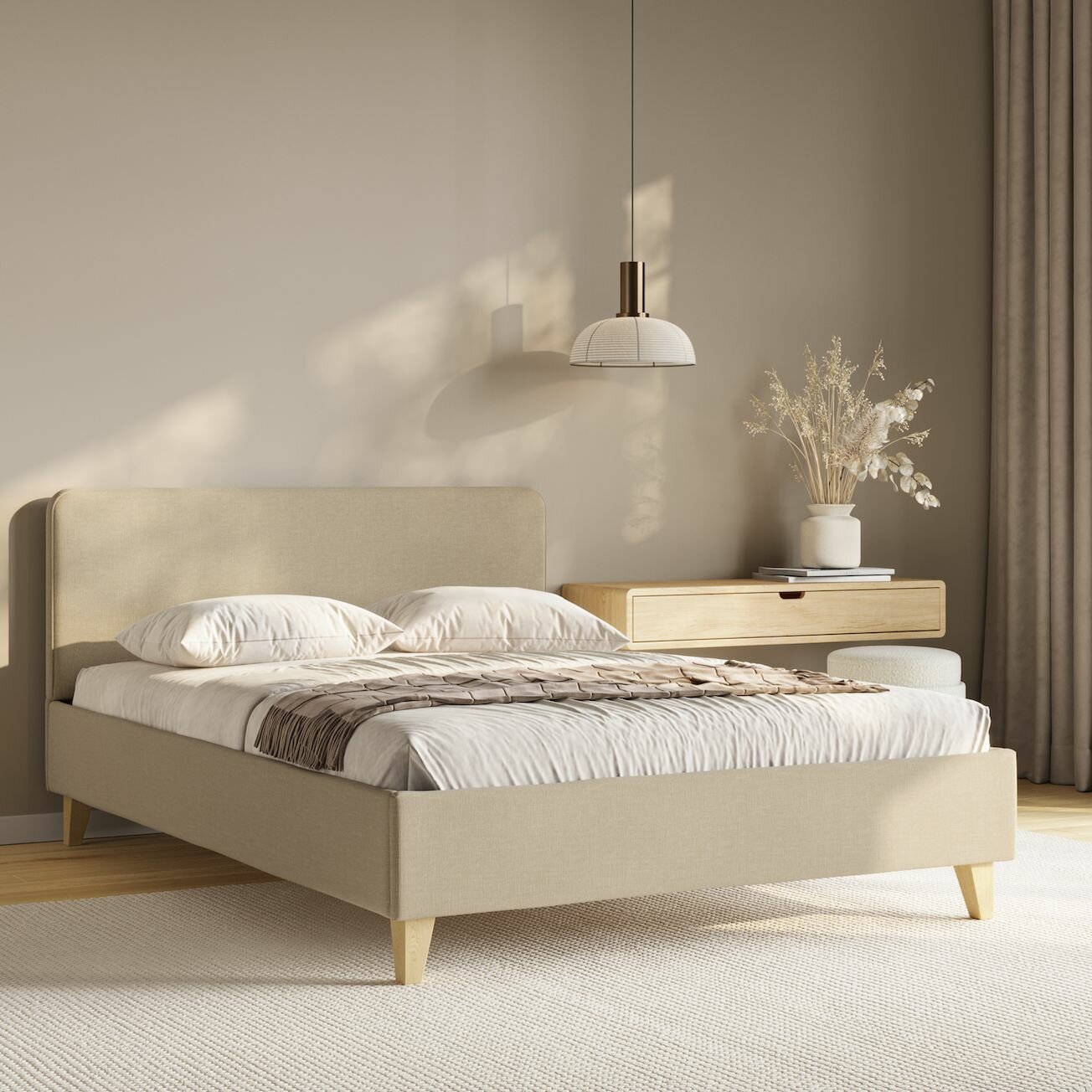 Купить Кровать 160x200 двуспальная с кроватным основанием Salotti сканди 160 рогожка Шифт бежевый