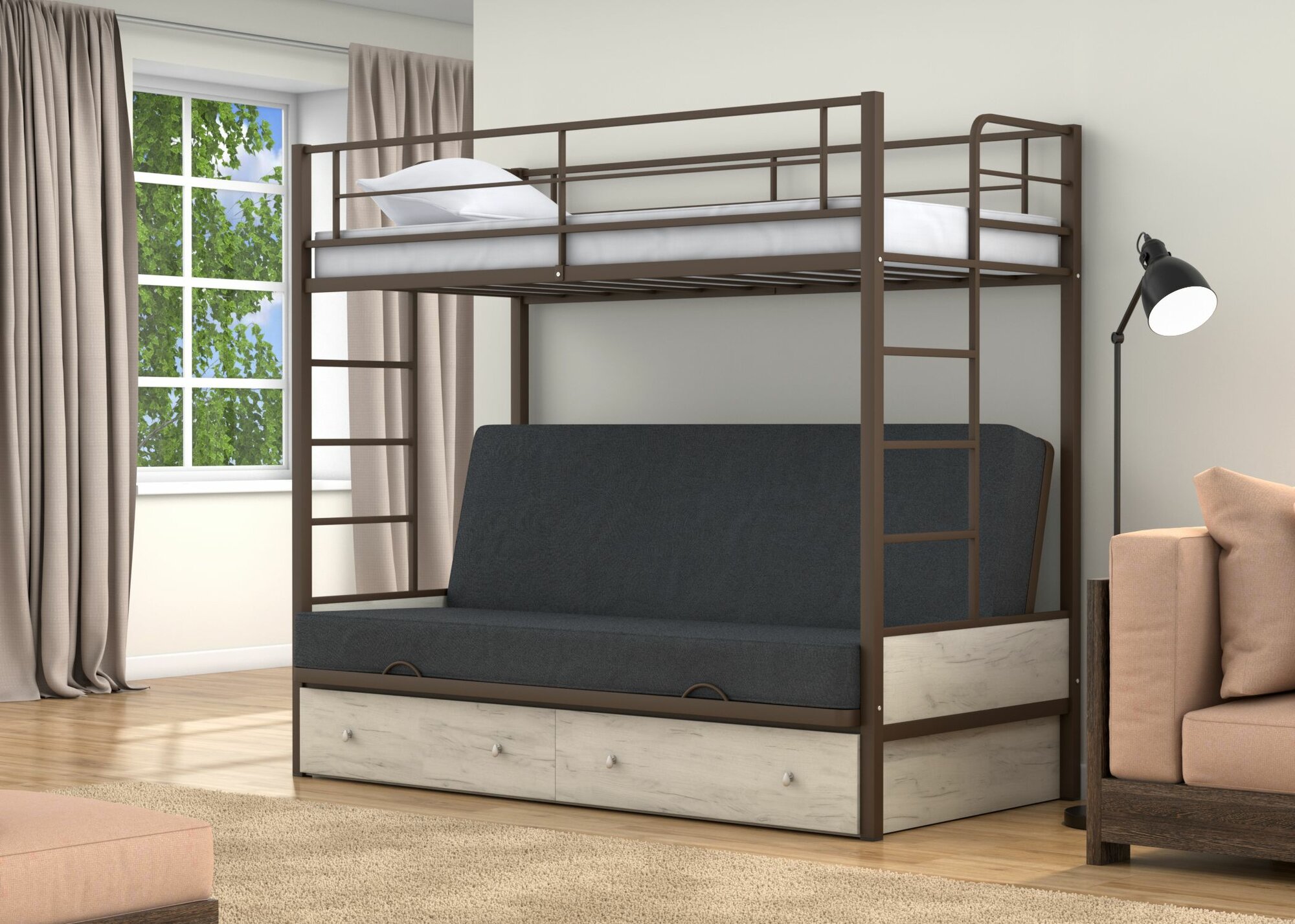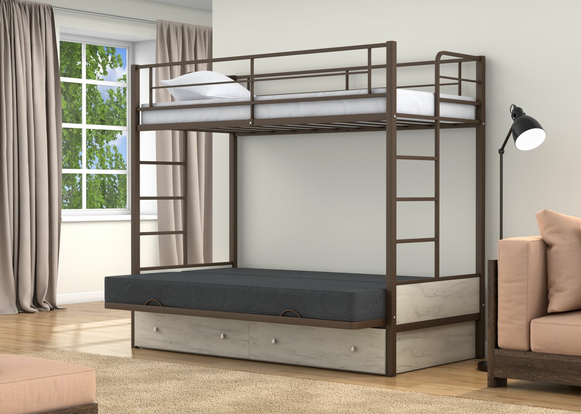 Купить Двухъярусная кровать-диван Дакар 1 Коричневый ящики Дуб крафт белый
