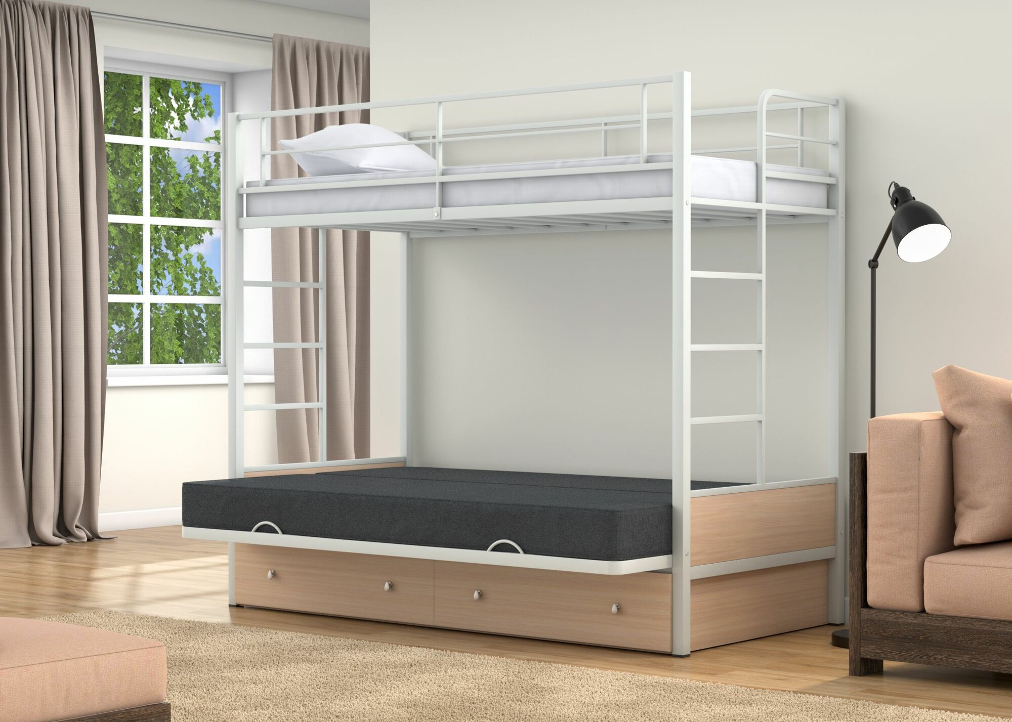Двухъярусная кровать-диван Дакар 1 Белый ящики Дуб крафт белый