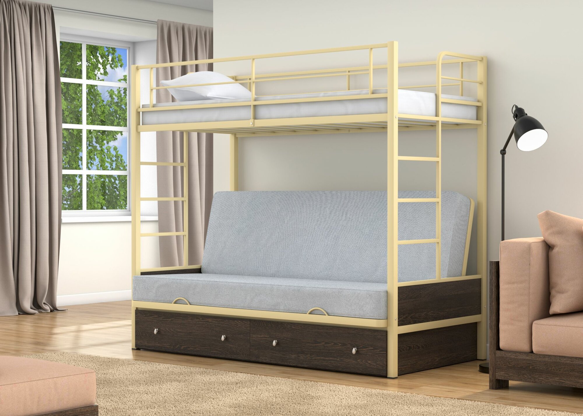 Купить Двухъярусная кровать-диван Дакар 1 Слоновая кость ящики Венге