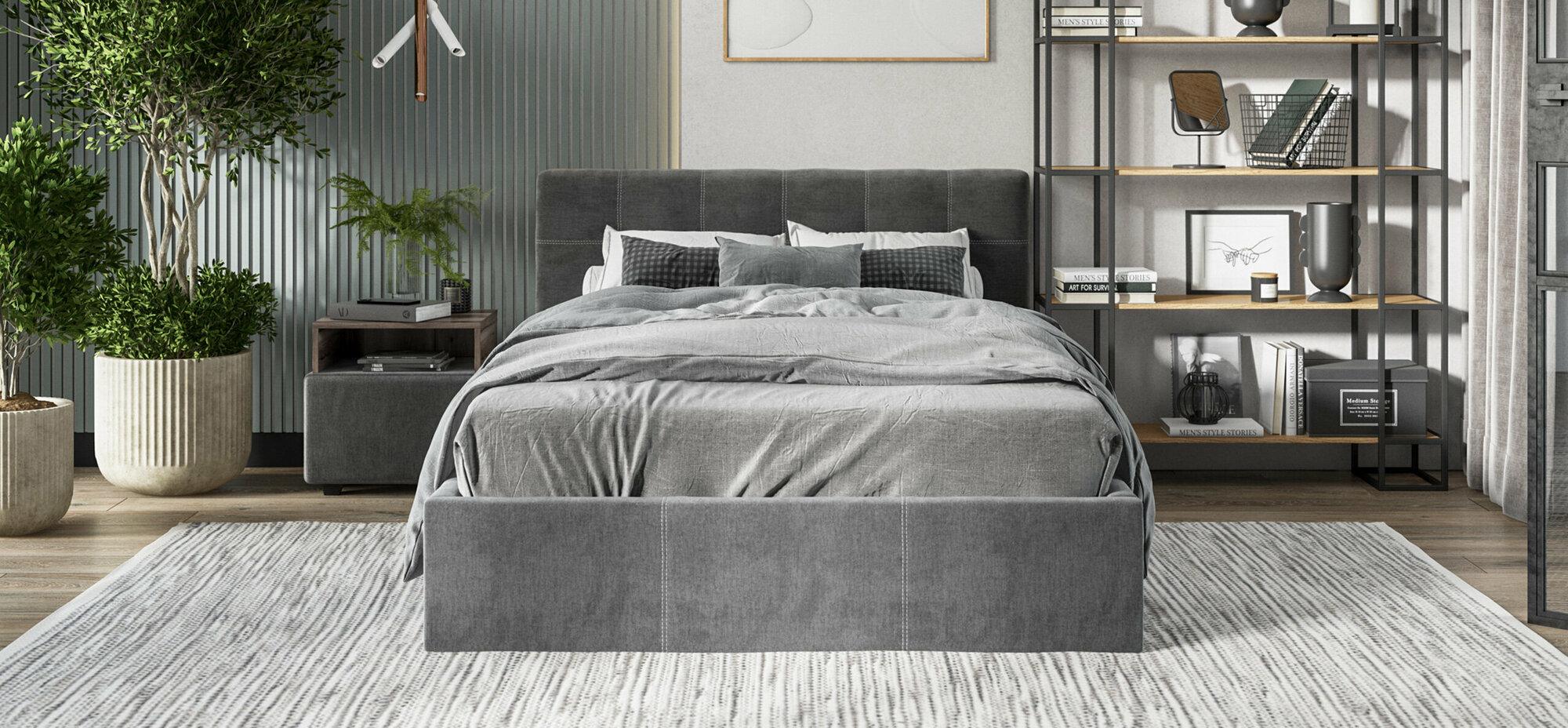 Кровать с матрасом Роза Серая Велюр 160х200
