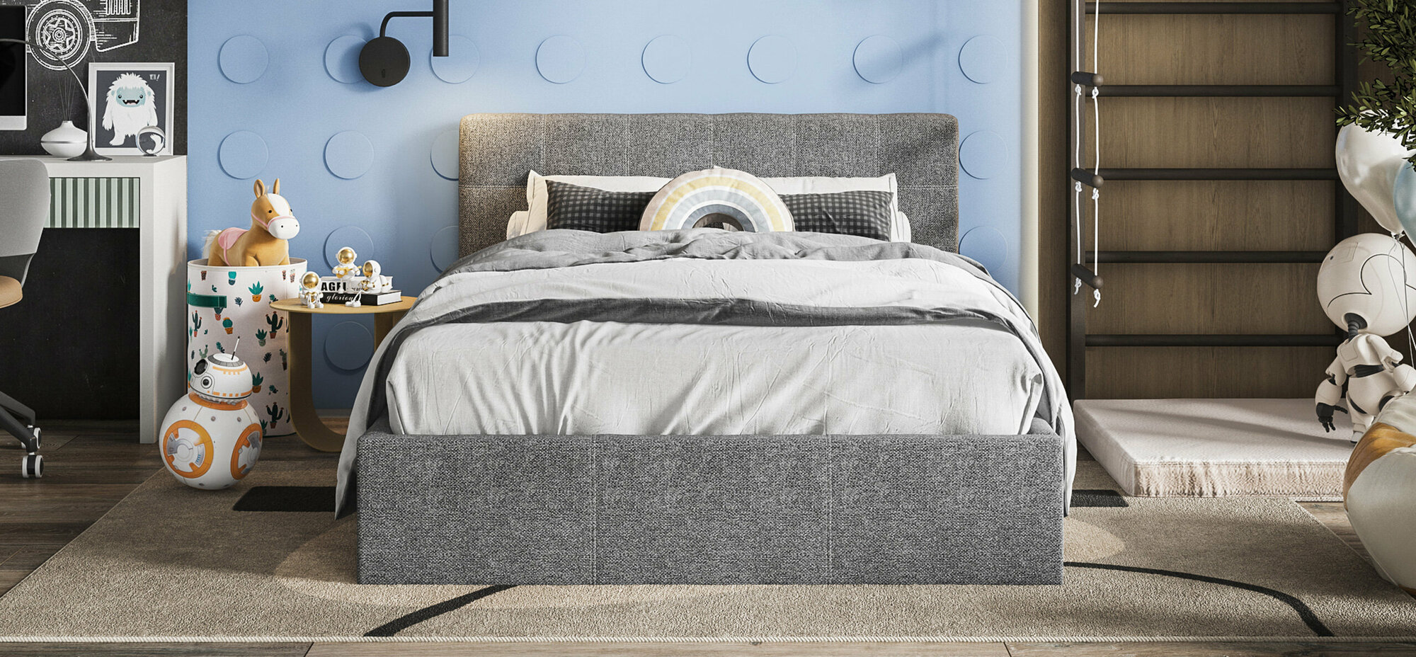 Двуспальная кровать Белла, с подъемным механизмом, рогожка Malmo серая, 140х200 см