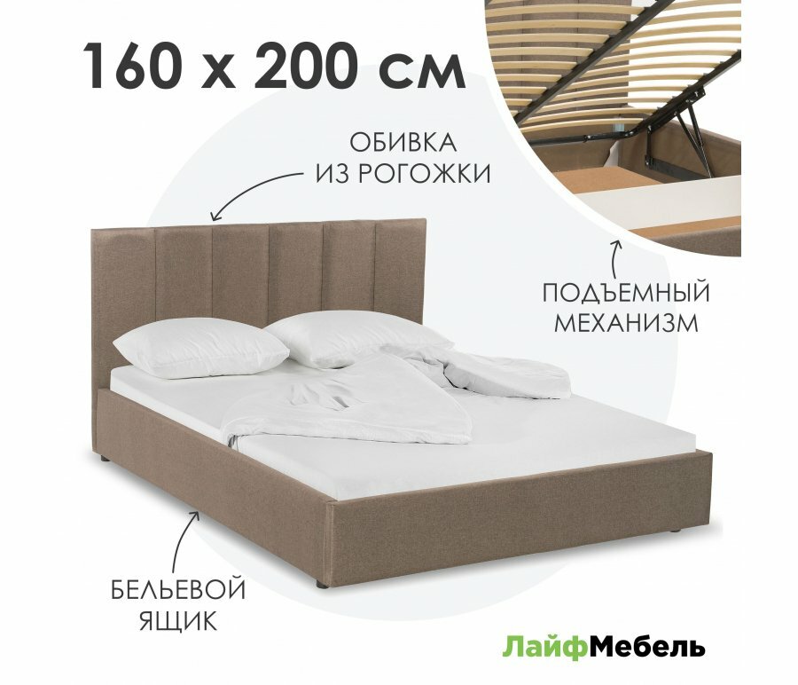 LM.RU Двуспальная кровать Афродита-3 160х200 с ПМ рогожка коричневая ЛайфМебель Афродита-3 160х200 с ПМ рогожка коричневая