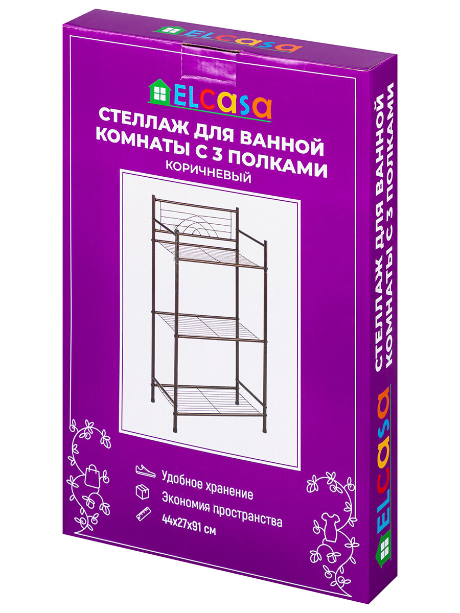 Стеллаж EL Casa для ванной комнаты с 3-мя полками "Коричневый" 44*27*91см (240250) интересное:
