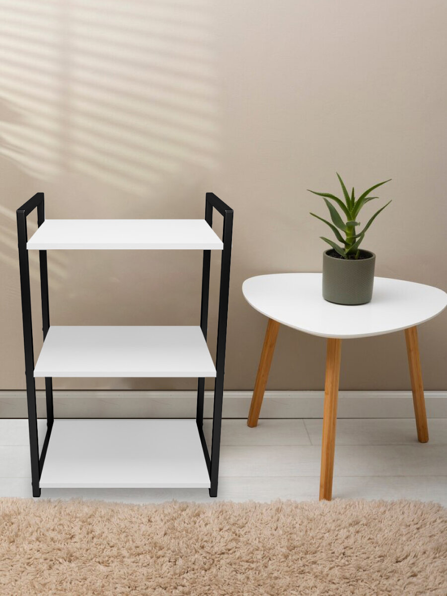 Купить Металлический стеллаж- этажерка Лофт для ванной, кухни, Уютный мастер, черный металл, белый