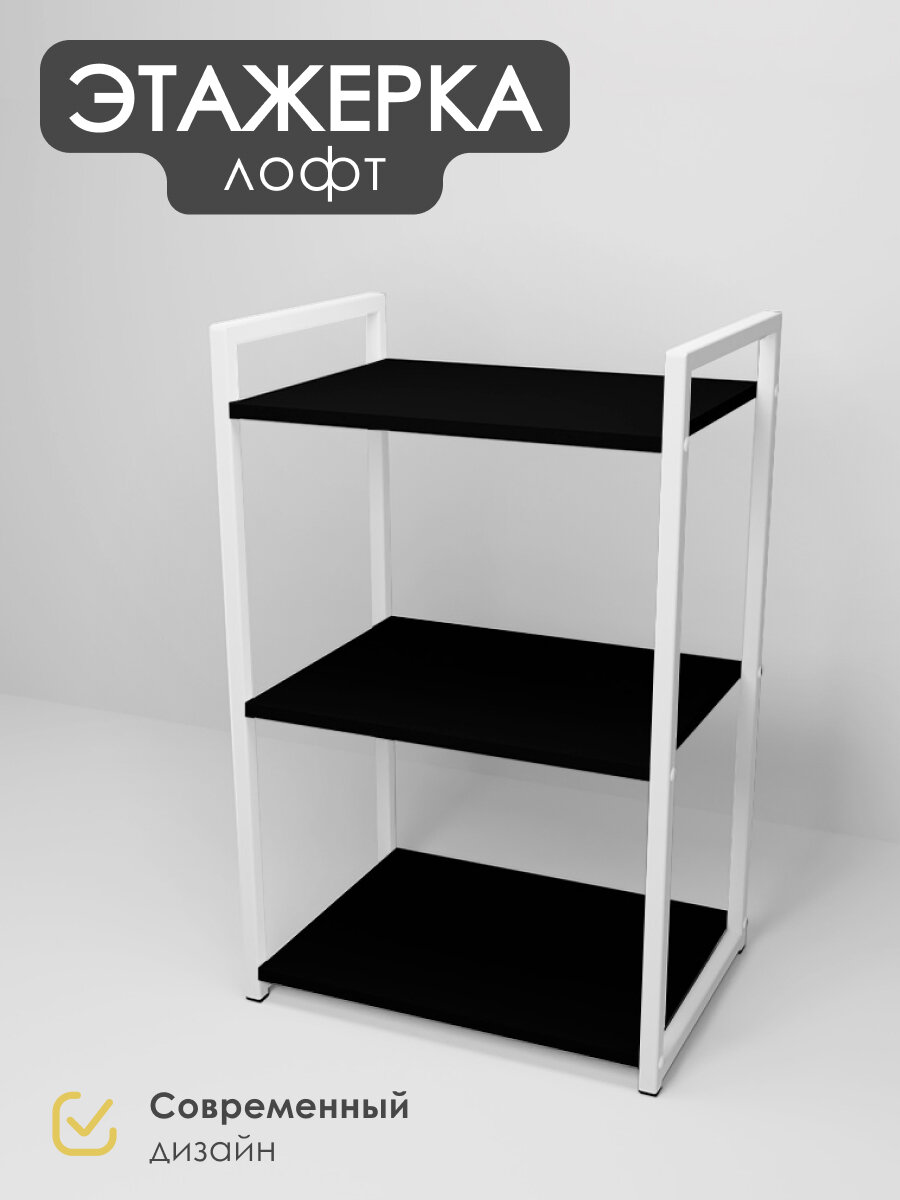 Металлический стеллаж- этажерка Лофт для ванной, кухни, Уютный мастер, черный металл, белый