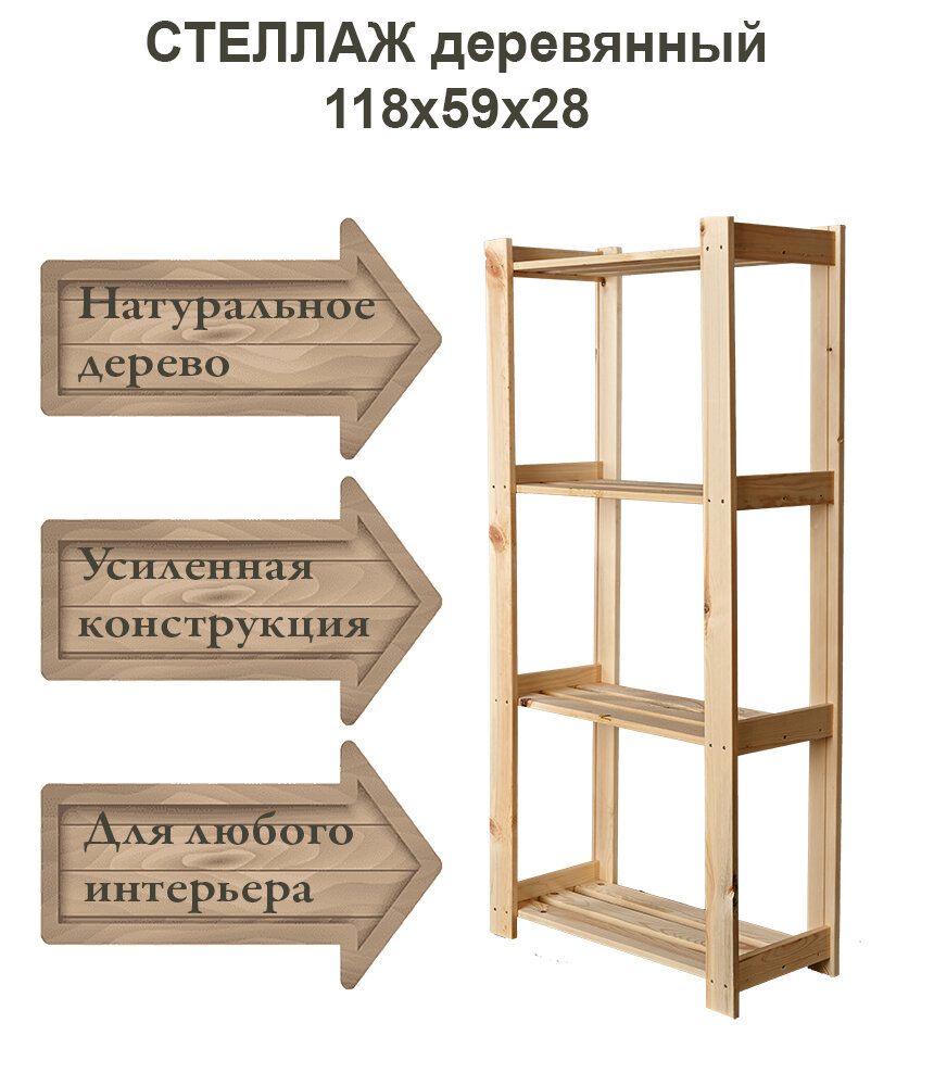 Стеллаж "Елки палки" деревянный, 118х59х28 см, 4 полки, сосна