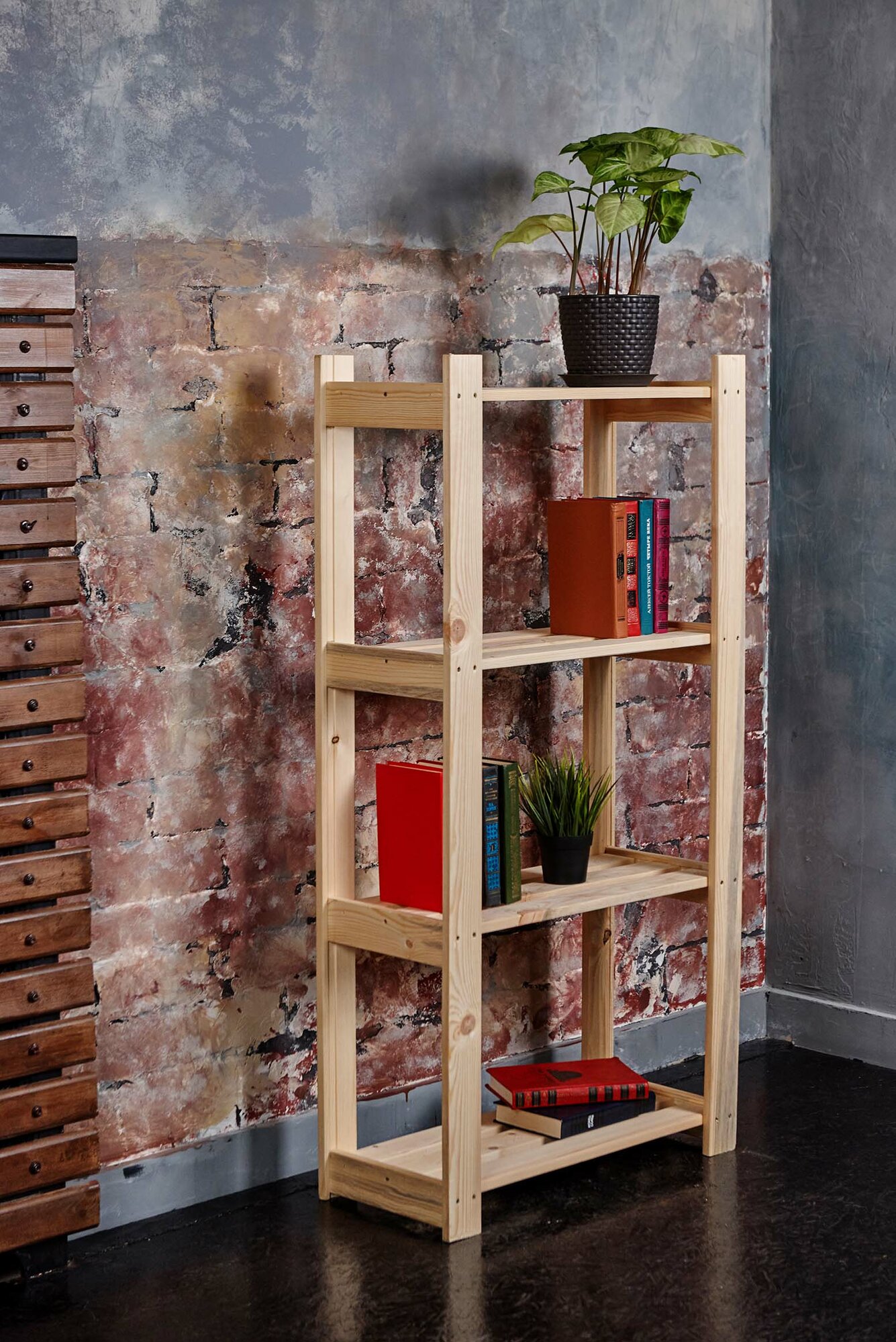 Стеллаж деревянный Нонтон Симпл графит 40.2x51.4x190 см, с ящиками