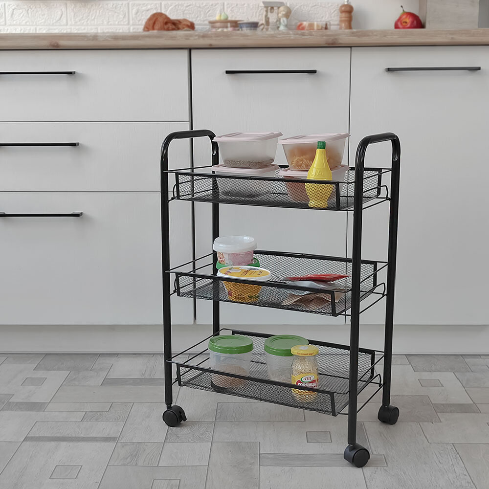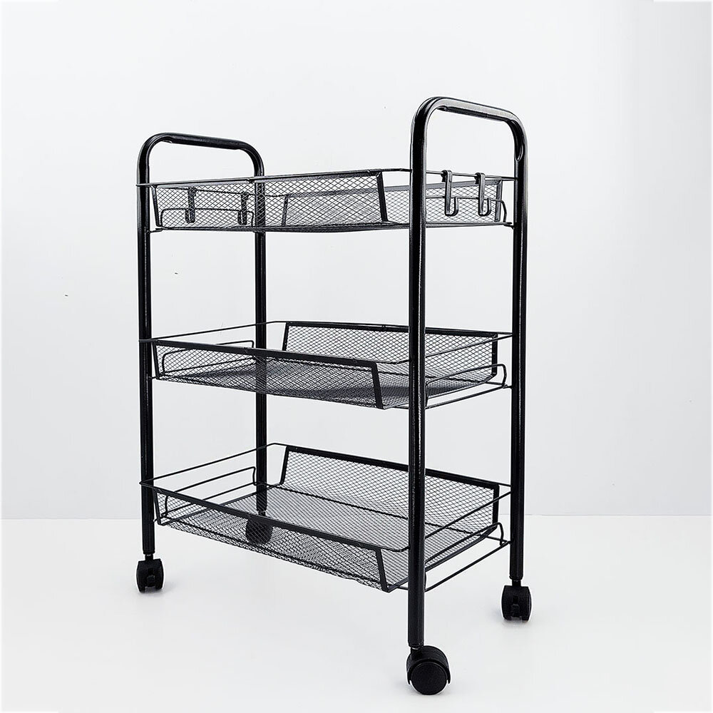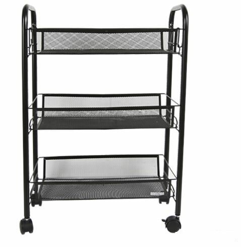 Купить Этажерка металлическая 3-х ярусная на колесах черный